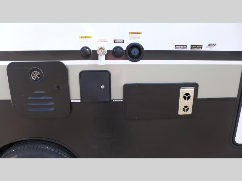 Each Hampton destination trailer by CrossRoads RV includes a one-piece fiberglass front cap, tinted glass windows, and an outside faucet that will surely come in handy when wanting to rinse off your hands or even shoes after exploring outdoors. Each is constructed with a fiberglass roof and floor insulation with radiant tech foil, an enclosed underbelly, and severe weather welded mounts plus rain gutters along the entire roof line. And, the Convenience package that comes standard includes KeyTV, a microwave, a quilted bedspread, a power vent in the bathroom, and more. Other interior features offered include decorative accent lighting, a patio door with a swing-out assist rail, and two-toned wood fascia. So choose your destination, select your favorite Hampton, and start feeling at home when you are actually on vacation!