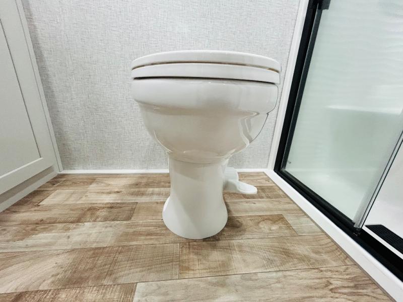 Each Hampton destination trailer by CrossRoads RV includes a one-piece fiberglass front cap, tinted glass windows, and an outside faucet that will surely come in handy when wanting to rinse off your hands or even shoes after exploring outdoors. Each is constructed with a fiberglass roof and floor insulation with radiant tech foil, an enclosed underbelly, and severe weather welded mounts plus rain gutters along the entire roof line. And, the Convenience package that comes standard includes KeyTV, a microwave, a quilted bedspread, a power vent in the bathroom, and more. Other interior features offered include decorative accent lighting, a patio door with a swing-out assist rail, and two-toned wood fascia. So choose your destination, select your favorite Hampton, and start feeling at home when you are actually on vacation!