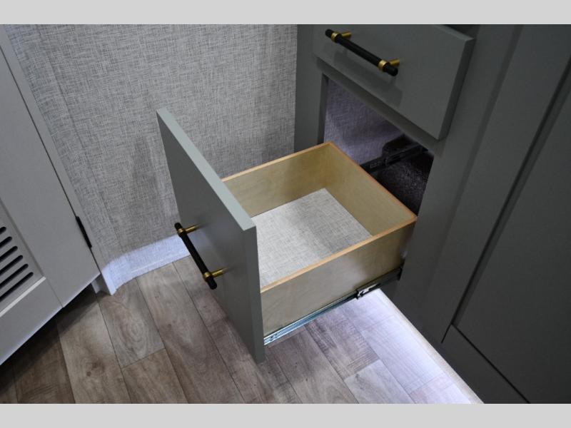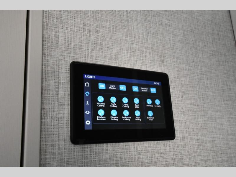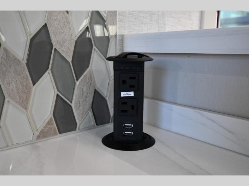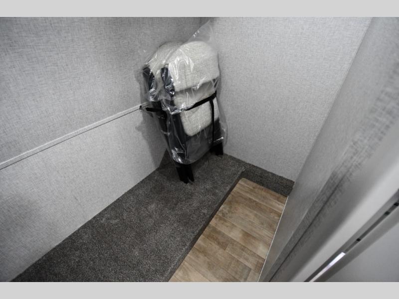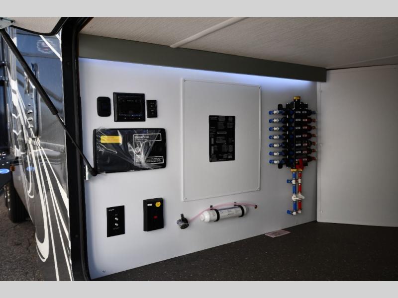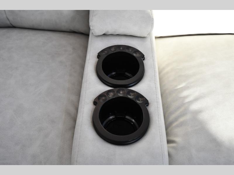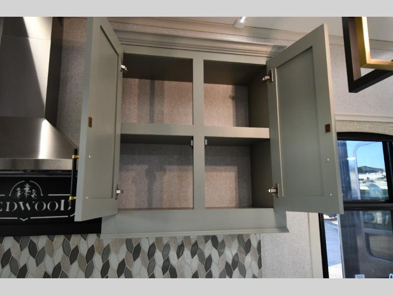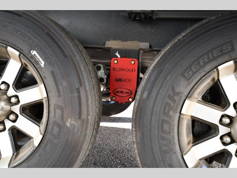 You are going to wish you found the Redwood fifth wheels sooner! With all of the residential comfort and modern luxury, you will be impressed. The Williamsburg Furniture Collection includes two premium dinette chairs, a buffet-style adjustable dinette with leaf extension, a residential-style sofa, and powered theater seating. The luxury further extends to the bedroom where you will find a gel-foam king bed with tilt and C-PAP shelves on both sides of the bed. The straight roof line gives a luxury profile, and there are preparations for a wireless backup camera as well as solar power. The seamless residential insulated heat ducts will efficiently heat your unit, and there is an exterior radio in the fully finished and heated pass-through with slat board storage.