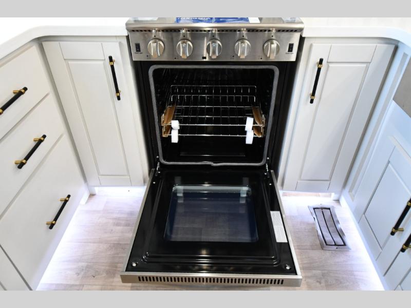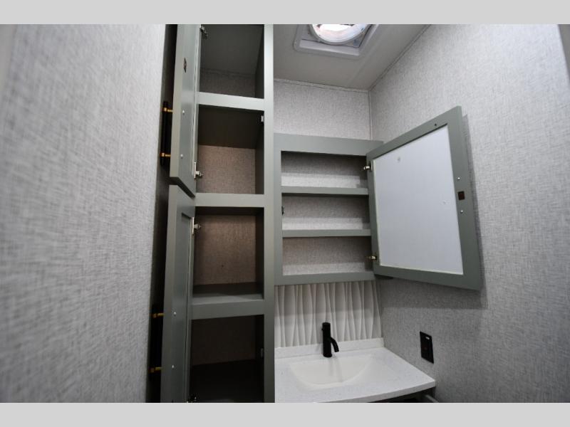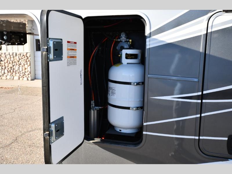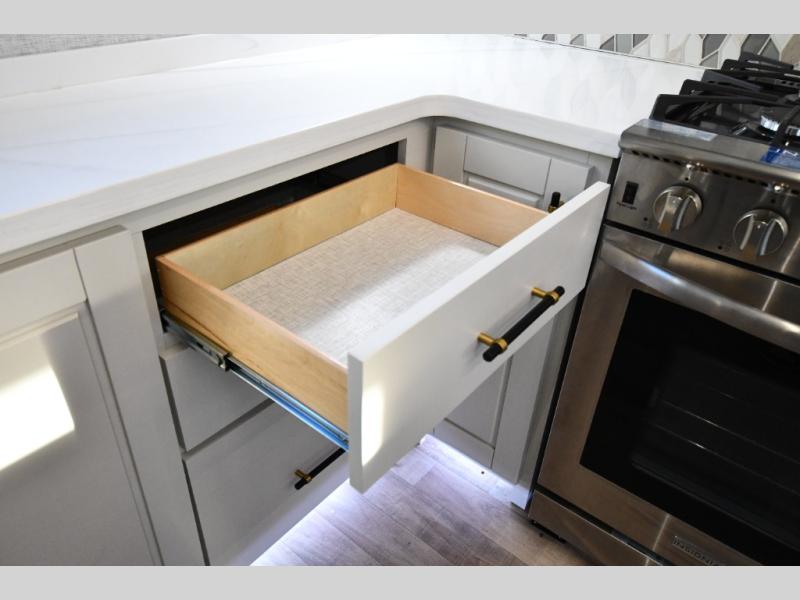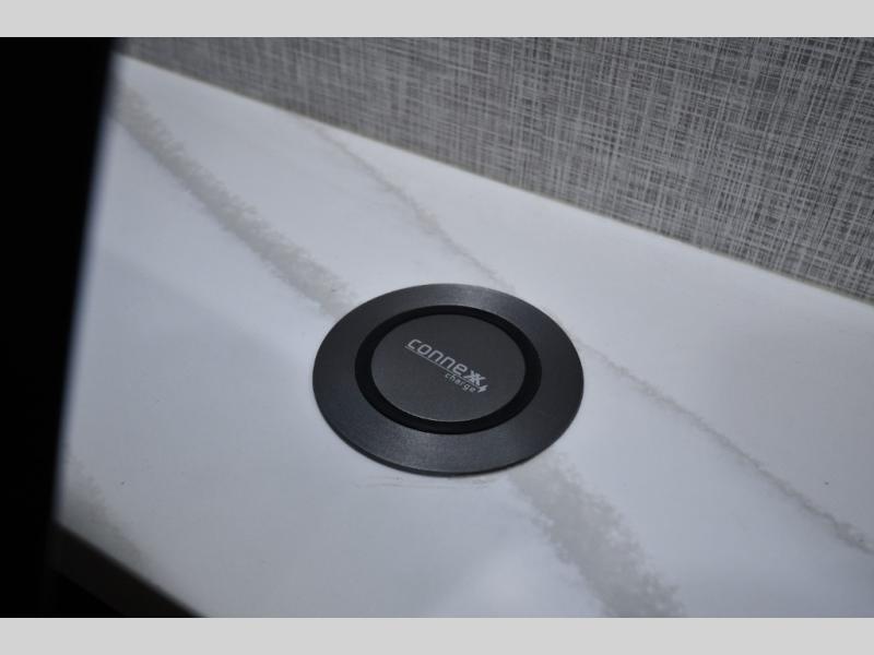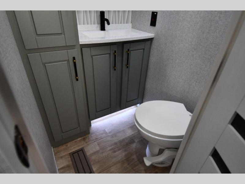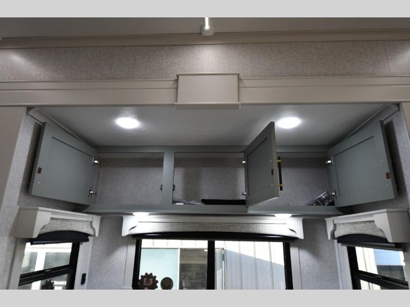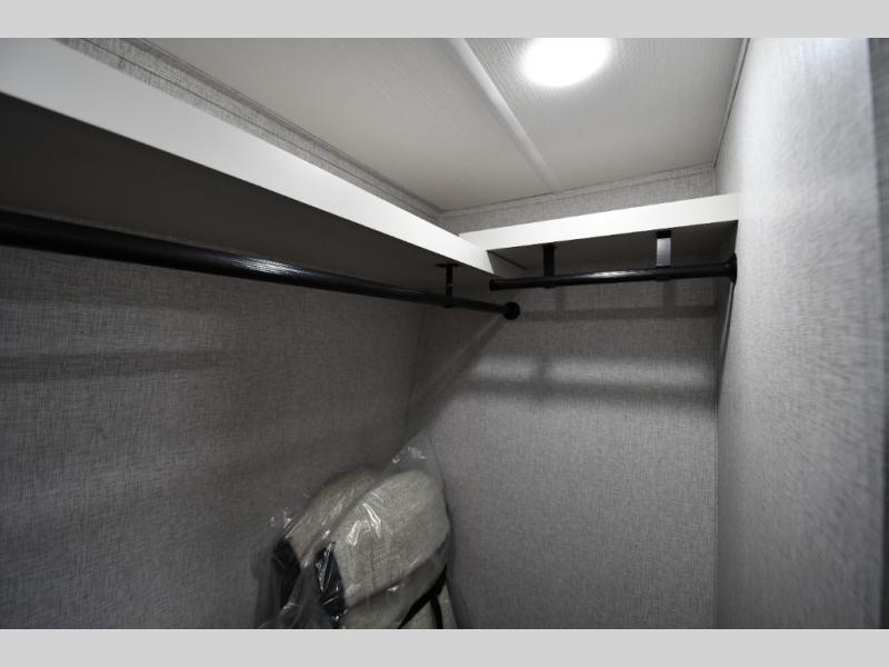 You are going to wish you found the Redwood fifth wheels sooner! With all of the residential comfort and modern luxury, you will be impressed. The Williamsburg Furniture Collection includes two premium dinette chairs, a buffet-style adjustable dinette with leaf extension, a residential-style sofa, and powered theater seating. The luxury further extends to the bedroom where you will find a gel-foam king bed with tilt and C-PAP shelves on both sides of the bed. The straight roof line gives a luxury profile, and there are preparations for a wireless backup camera as well as solar power. The seamless residential insulated heat ducts will efficiently heat your unit, and there is an exterior radio in the fully finished and heated pass-through with slat board storage.