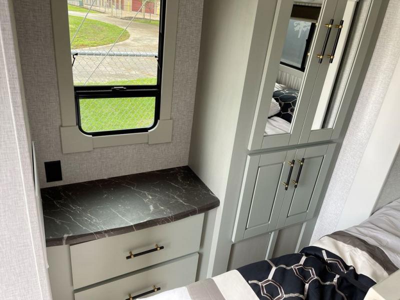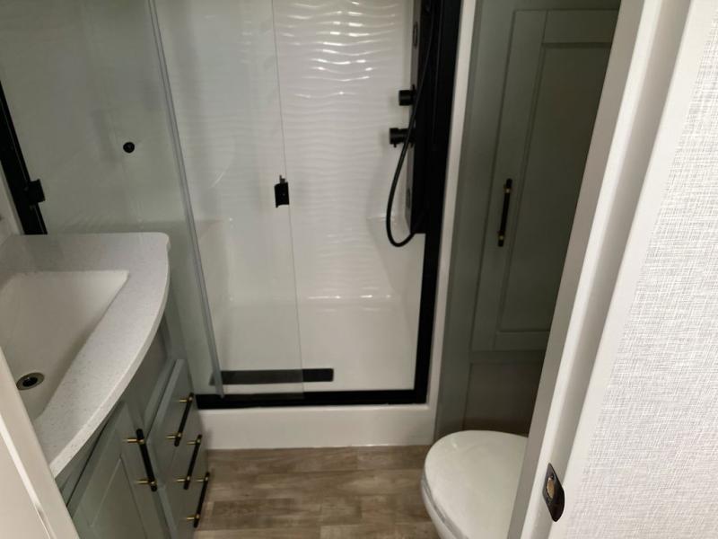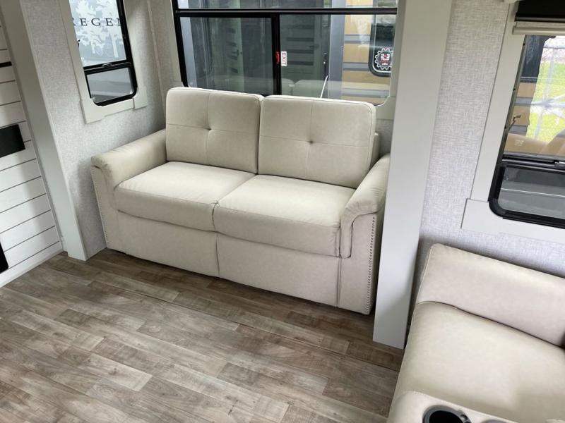 With any Regency destination trailer by Redwood RV, you will find it easier than ever to enjoy extended stays at the location of your choice. Each model is built with a Z-65 true gel coat fiberglass exterior, a fully walkable roof with one-piece Alpha-Ply roof material, and a 12" custom I-beam chassis for a strong foundation. There are also enclosed and heated water lines outside, along with wireless backup camera prep, a front insulated fiberglass cap, and dual pane windows. You'll love the standard Parks Package that includes USB ports throughout and a Winegard 360 to stay connected as you camp, plus a central vacuum and custom hardwood cabinet doors for that added touch of home! The Full-Time Living Package also comes standard and includes a multi-functional stainless steel sink, linoleum throughout, a dedicated garbage cabinet, and a power vent in the bathroom to name a few conveniences!