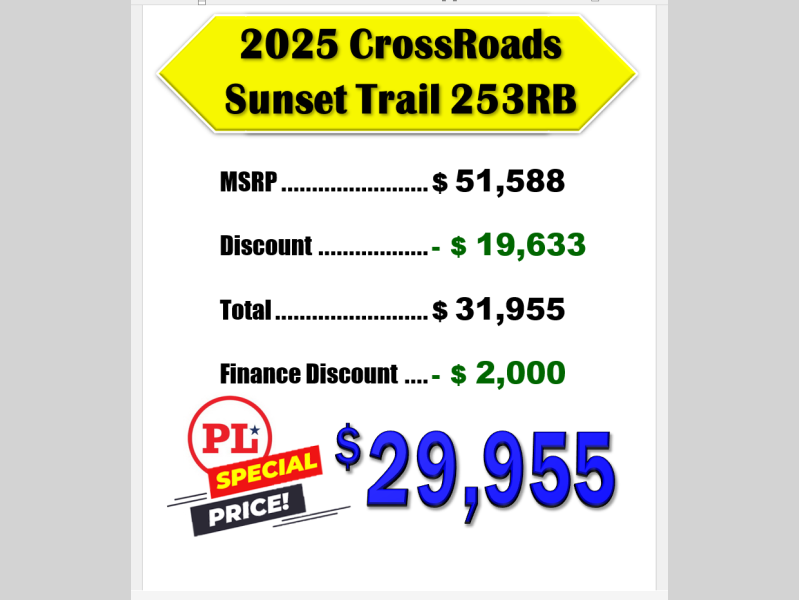 New 2025 CrossRoads RV Sunset Trail 253RB Travel Trailer