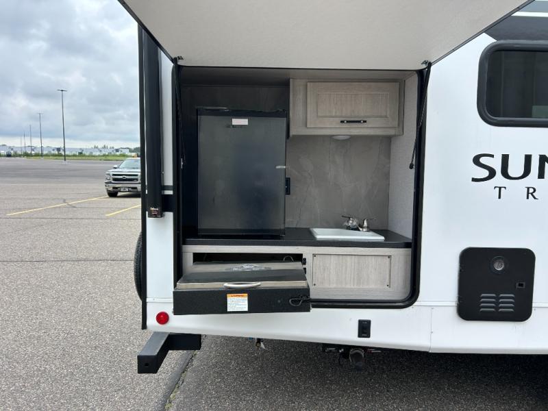 With any Sunset Trailer travel trailer by CrossRoads RV, you will enjoy comfort at every turn! The 5-sided aluminum structure, enclosed underbelly, and HyperDeck flooring provide a durable RV made to last. There is also a power awning with LED lights outdoors, a fiberglass front cap, and a docking station with battery disconnect for easy set-up. Each model includes solid surface kitchen countertops, porcelain toilets, roller shades, and hidden cabinet door hinges to name a few interior comforts!