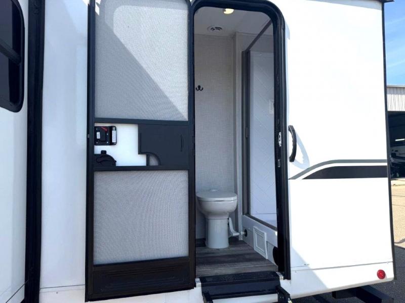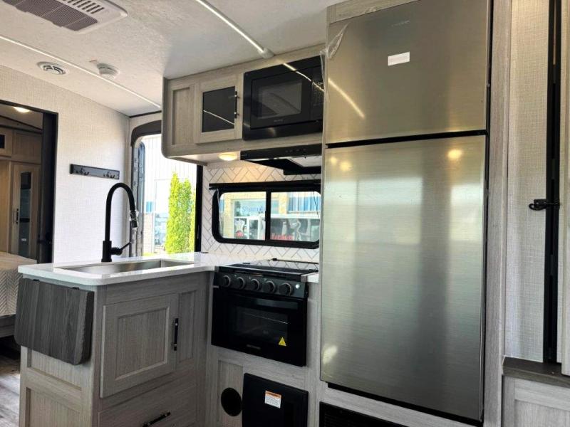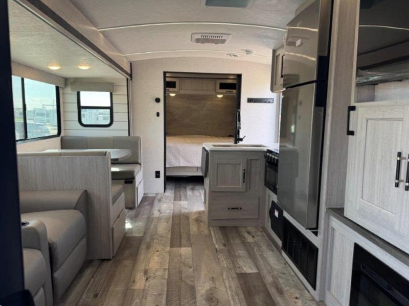 With any Sunset Trailer travel trailer by CrossRoads RV, you will enjoy comfort at every turn! The 5-sided aluminum structure, enclosed underbelly, and HyperDeck flooring provide a durable RV made to last. There is also a power awning with LED lights outdoors, a fiberglass front cap, and a docking station with battery disconnect for easy set-up. Each model includes solid surface kitchen countertops, porcelain toilets, roller shades, and hidden cabinet door hinges to name a few interior comforts!