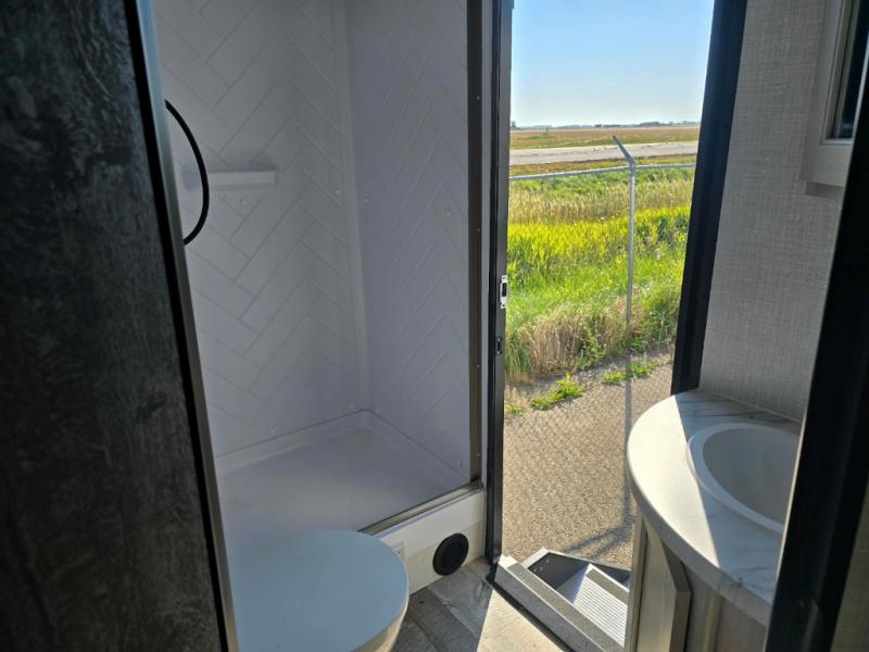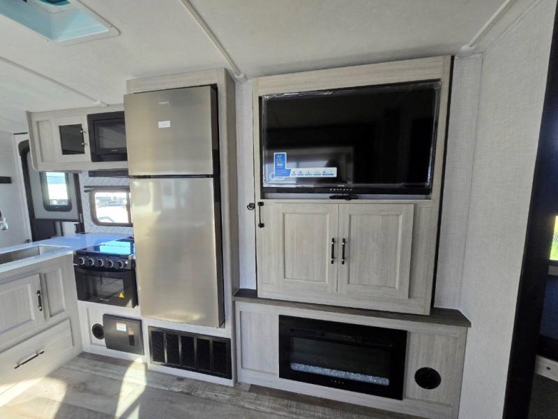 Camping trips are made fun in this spacious travel trailer for eight! There are double-size bunks in the rear corner, with the full bath close by for easy nighttime use. You'll enjoy the front private bedroom all to yourselves, and any other guests can sleep on the sofa and booth dinette. There is also a fireplace here to make this space more cozy. The chef of your group can make home cooked meals in the full kitchen, and they will appreciate the hidden pantry behind the entertainment center to keep food stocked!