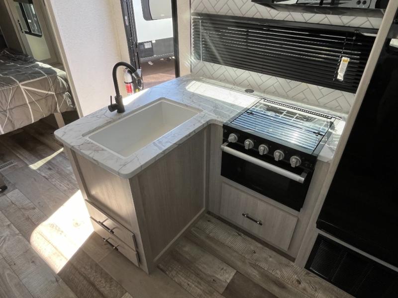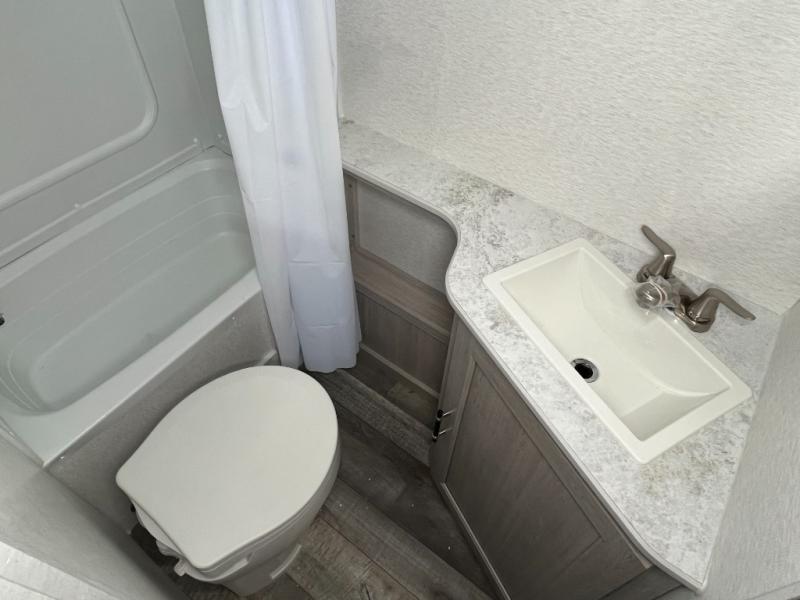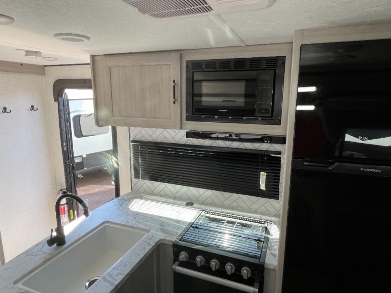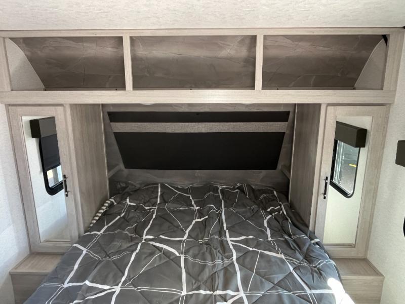 With any Sunset Trailer Sport Series travel trailer by CrossRoads RV, you will enjoy comfort at every turn at a more affordable price point! The 6-sided laminated structure, enclosed underbelly, and HyperDeck flooring provide a durable RV made to last. There is also a power awning outdoors, along with backup camera prep, a power tongue jack, and an outside water port if you need to wash of hiking gear. Each model includes pressed kitchen countertops, roller shades, LED lights and many comforts to make each camping trip one to remember!