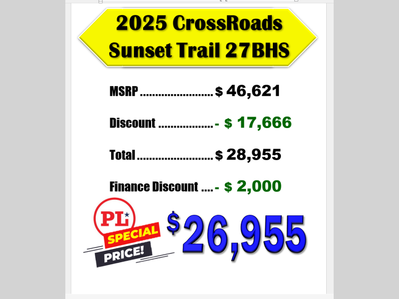 New 2025 CrossRoads RV Sunset Trail 27BHS Travel Trailer
