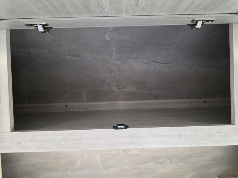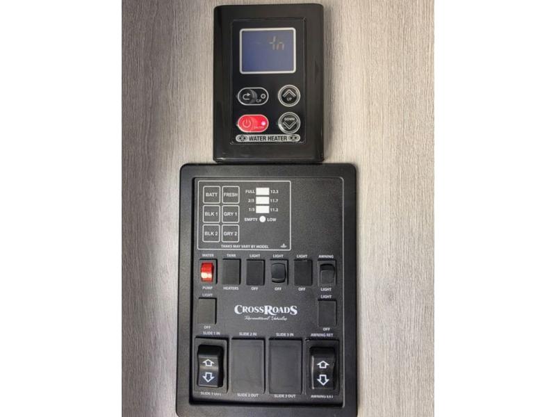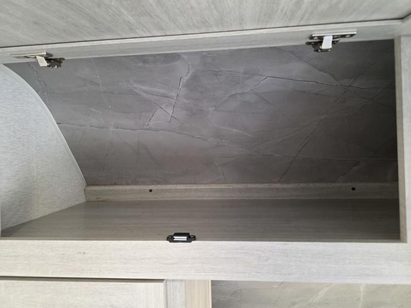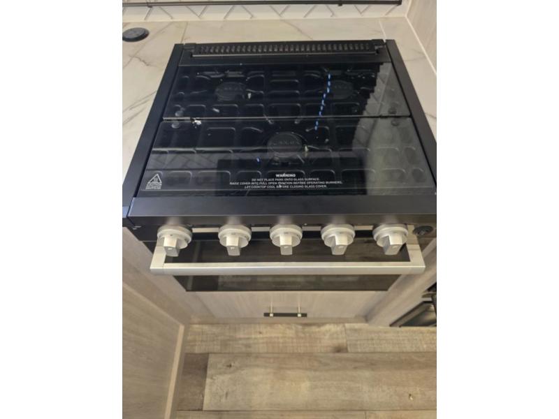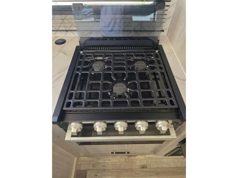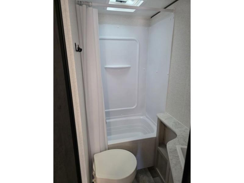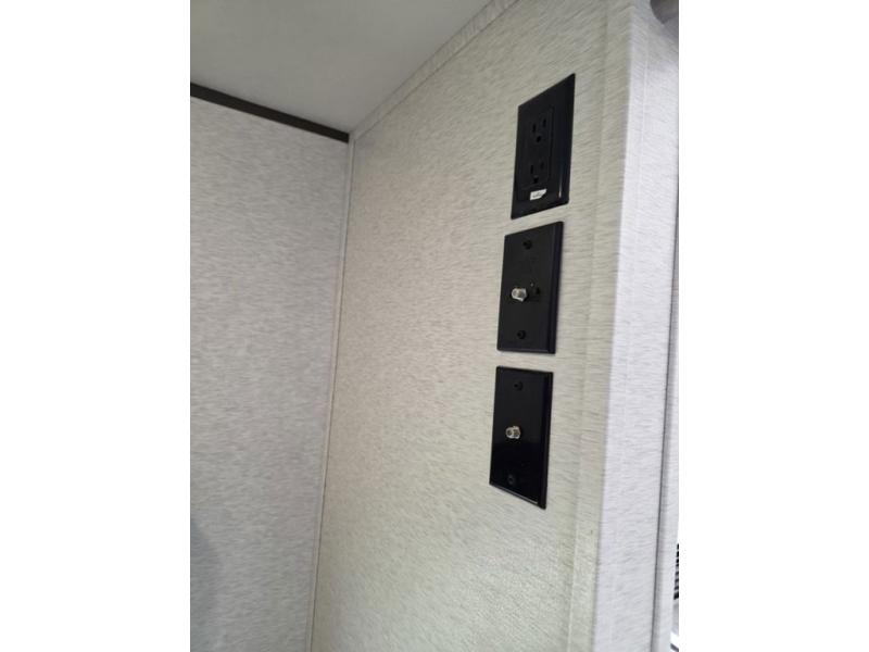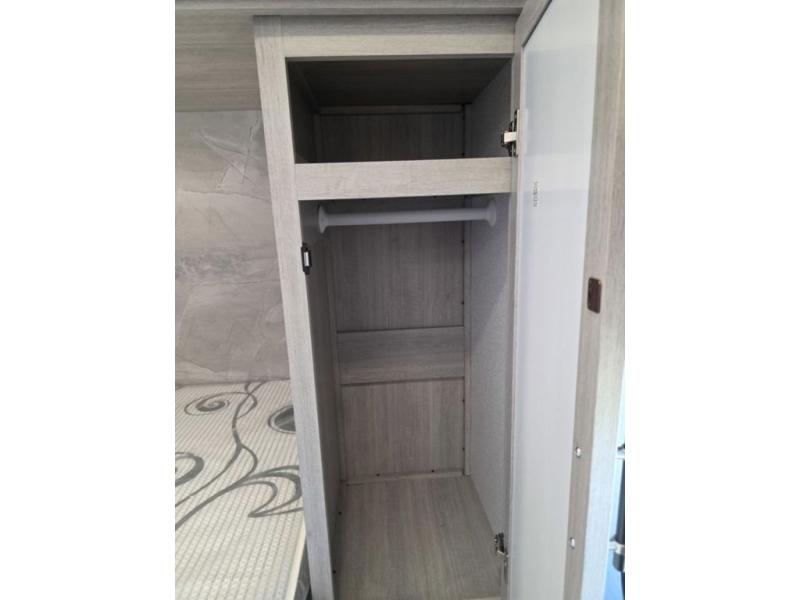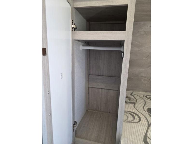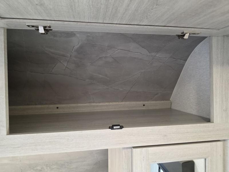 This spacious travel trailer is perfect for the group who loves to travel and camp. You'll have the front private bedroom all to yourselves that includes a queen bed, dual wardrobes and dual shelves to keep your space tidy. There is also a 36" sliding door that will save on space! Your guests or kids can sleep on the double-size bunks, and the full bath with a tub is right next to the bunks for easy nighttime use. The combined kitchen and living area will be a favorite place to hang out with its large slide out, 60" sofa and booth dinette, plus a fireplace with a hidden pantry behind for snacks galore!