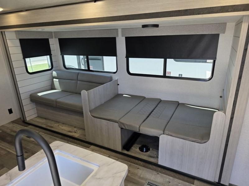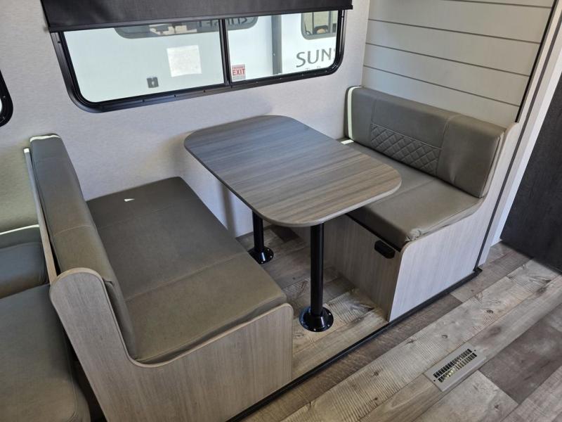 With any Sunset Trailer Sport Series travel trailer by CrossRoads RV, you will enjoy comfort at every turn at a more affordable price point! The 6-sided laminated structure, enclosed underbelly, and HyperDeck flooring provide a durable RV made to last. There is also a power awning outdoors, along with backup camera prep, a power tongue jack, and an outside water port if you need to wash of hiking gear. Each model includes pressed kitchen countertops, roller shades, LED lights and many comforts to make each camping trip one to remember!