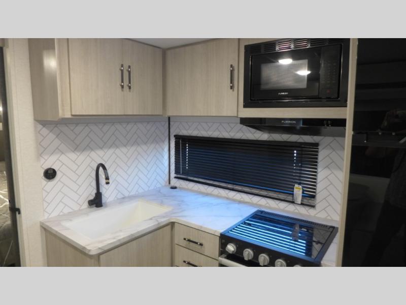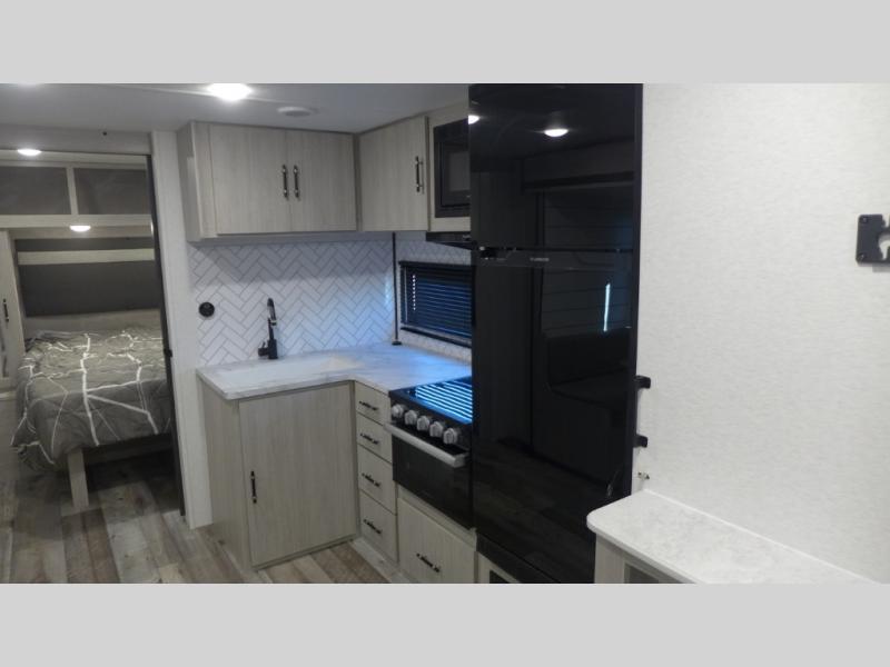 With any Sunset Trailer Sport Series travel trailer by CrossRoads RV, you will enjoy comfort at every turn at a more affordable price point! The 6-sided laminated structure, enclosed underbelly, and HyperDeck flooring provide a durable RV made to last. There is also a power awning outdoors, along with backup camera prep, a power tongue jack, and an outside water port if you need to wash of hiking gear. Each model includes pressed kitchen countertops, roller shades, LED lights and many comforts to make each camping trip one to remember!