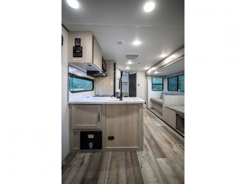 With any Sunset Trailer Sport Series travel trailer by CrossRoads RV, you will enjoy comfort at every turn at a more affordable price point! The 6-sided laminated structure, enclosed underbelly, and HyperDeck flooring provide a durable RV made to last. There is also a power awning outdoors, along with backup camera prep, a power tongue jack, and an outside water port if you need to wash of hiking gear. Each model includes pressed kitchen countertops, roller shades, LED lights and many comforts to make each camping trip one to remember!