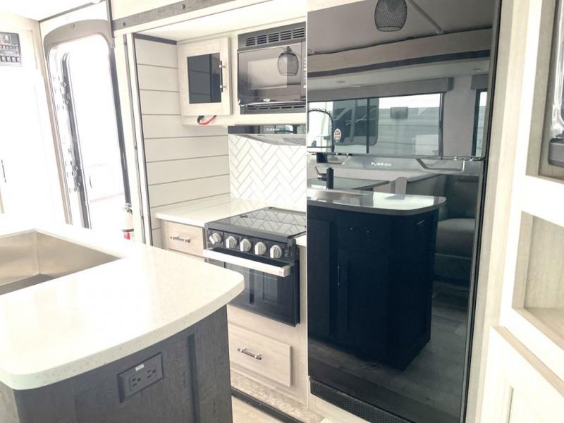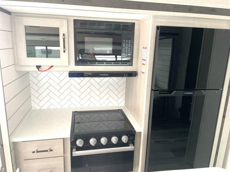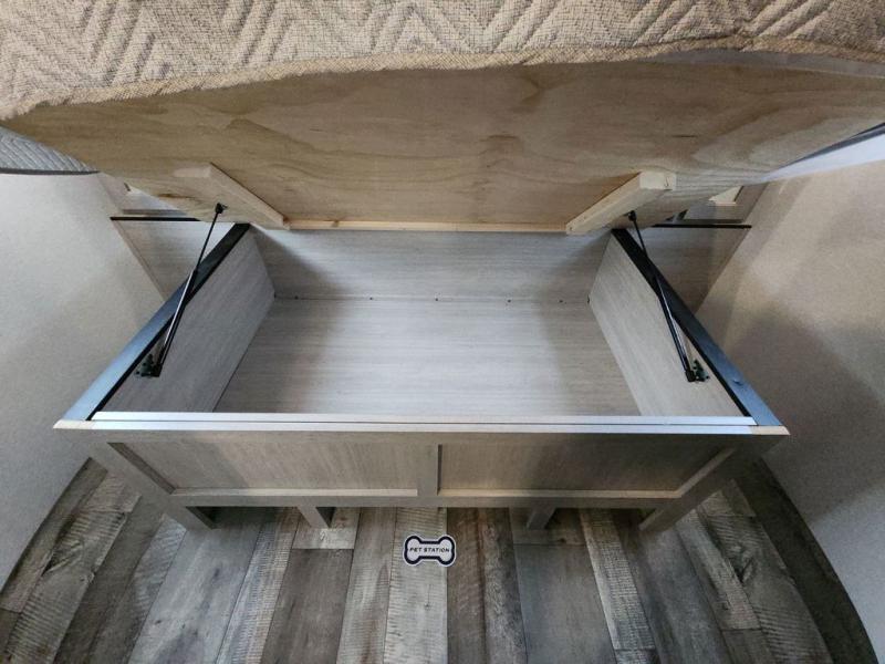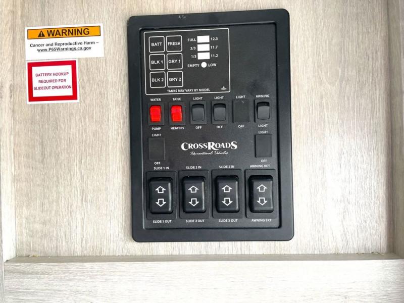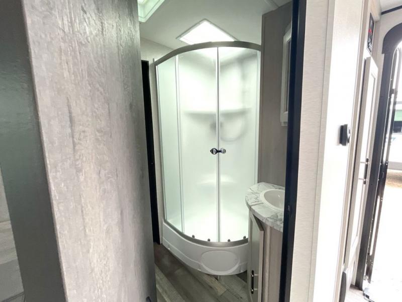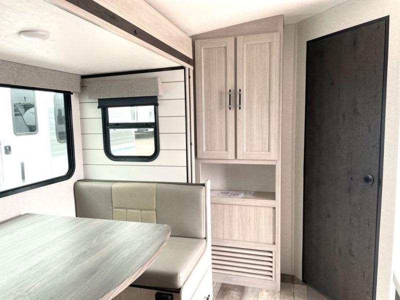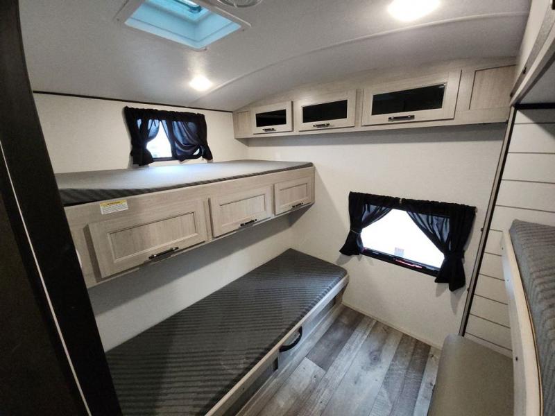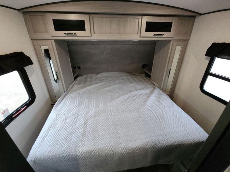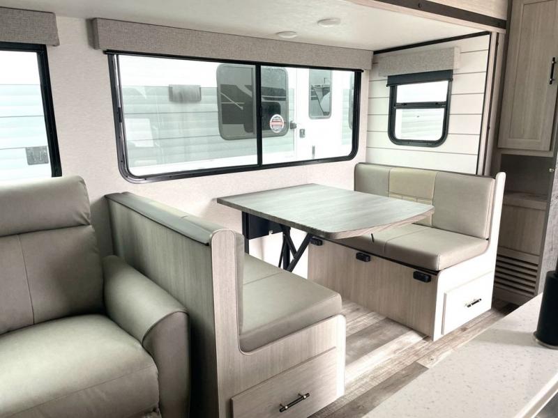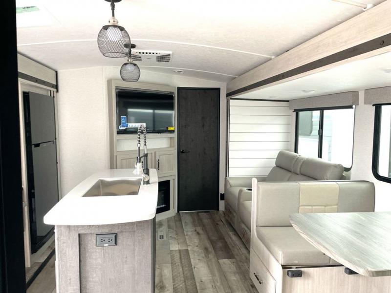 With any Sunset Trailer travel trailer by CrossRoads RV, you will enjoy comfort at every turn! The 5-sided aluminum structure, enclosed underbelly, and HyperDeck flooring provide a durable RV made to last. There is also a power awning with LED lights outdoors, a fiberglass front cap, and a docking station with battery disconnect for easy set-up. Each model includes solid surface kitchen countertops, porcelain toilets, roller shades, and hidden cabinet door hinges to name a few interior comforts!