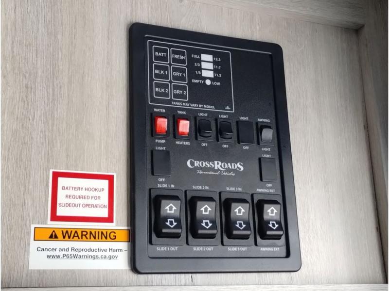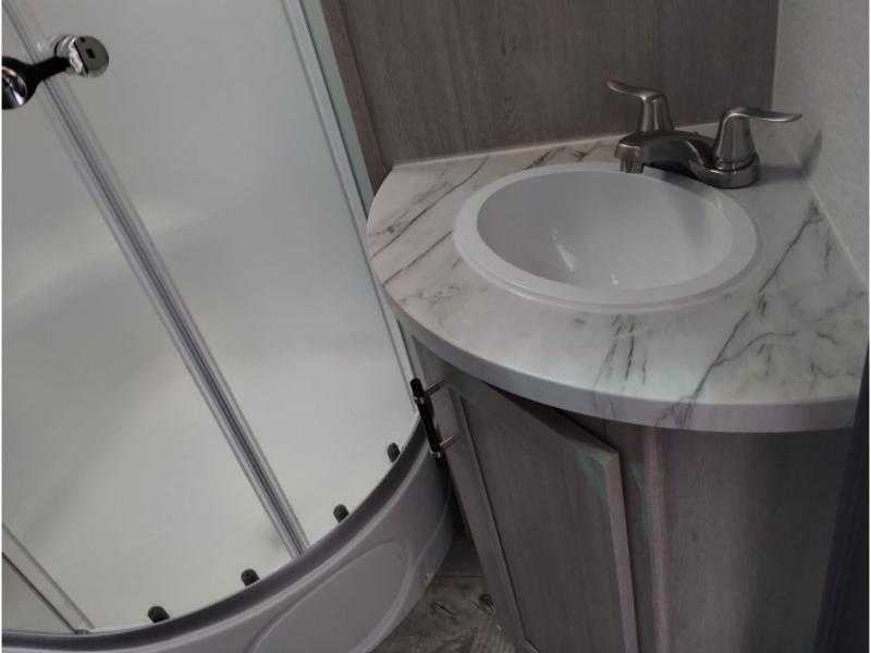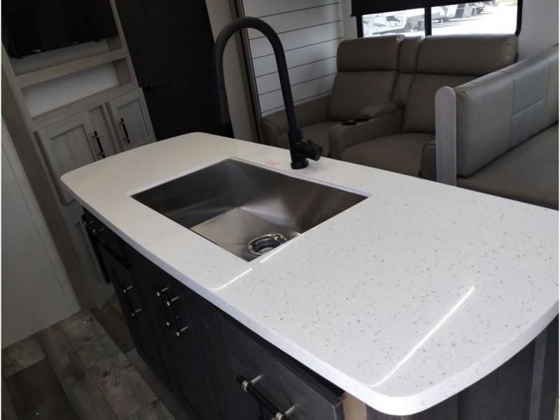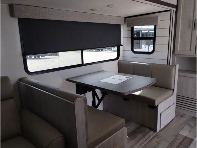 With any Sunset Trailer travel trailer by CrossRoads RV, you will enjoy comfort at every turn! The 5-sided aluminum structure, enclosed underbelly, and HyperDeck flooring provide a durable RV made to last. There is also a power awning with LED lights outdoors, a fiberglass front cap, and a docking station with battery disconnect for easy set-up. Each model includes solid surface kitchen countertops, porcelain toilets, roller shades, and hidden cabinet door hinges to name a few interior comforts!