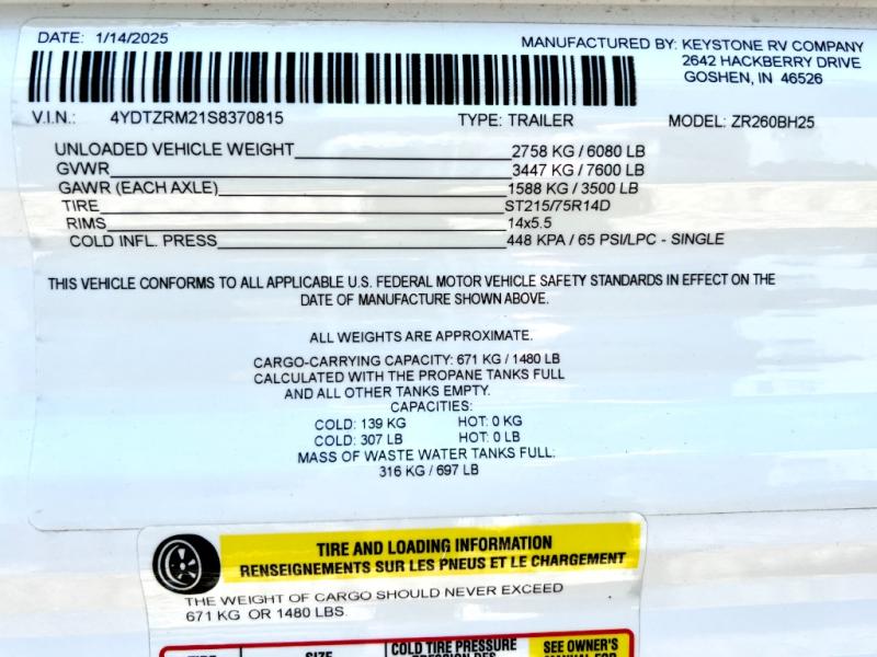 New 2025 CrossRoads RV Zinger 260BH Travel Trailer