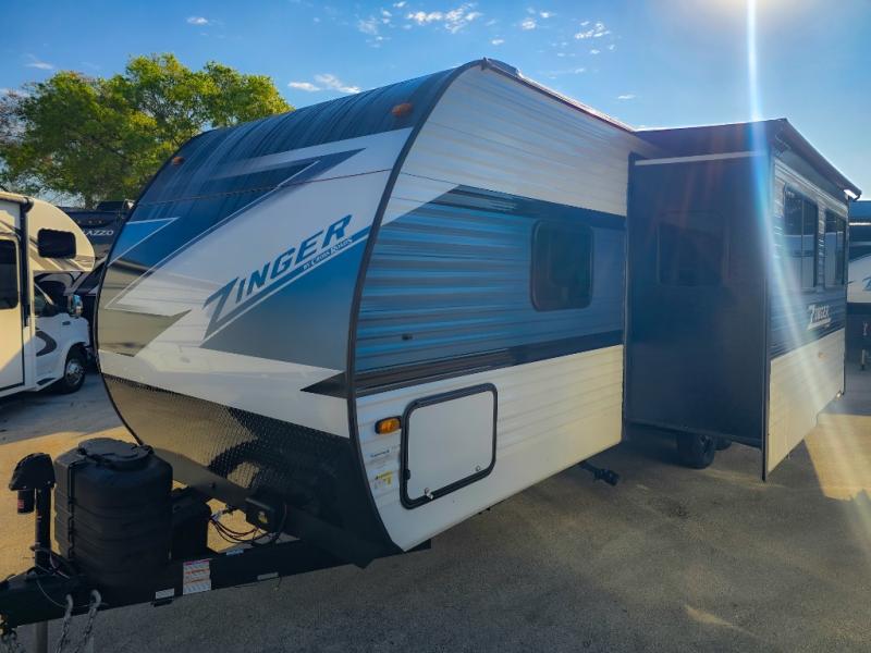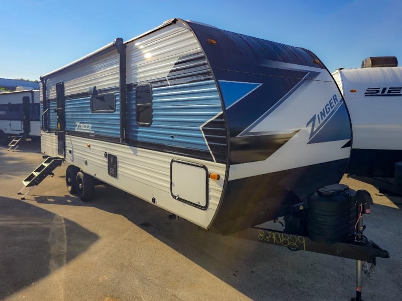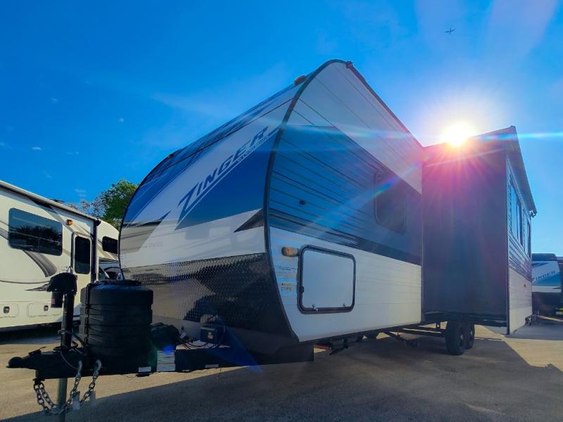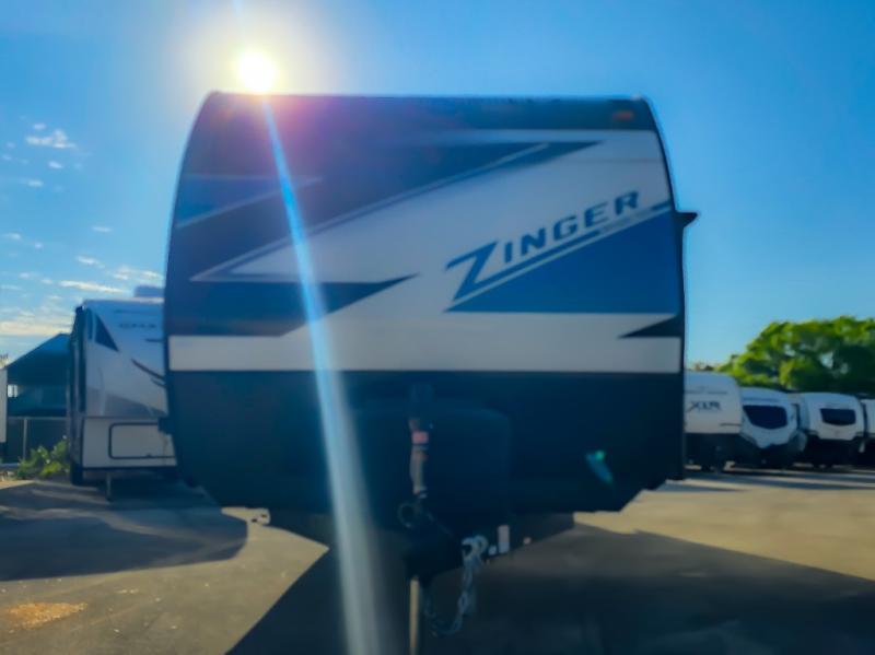 Lead your family to a great vacation getaway in any one of these CrossRoads RV Zinger travel trailers! They feature an aerodynamic front end, Keyed-Alike door locks, Secure Stance entry steps, and exterior speakers with LED accents. The interior of each model includes kitchen backsplash and pressed countertops, along with generous storage, designer valances, and LED lighting to keep your space well lit. You will also appreciate USB ports to keep your electronics charged up, and there is an AM/FM stereo with a Bluetooth soundbar to keep the party going!