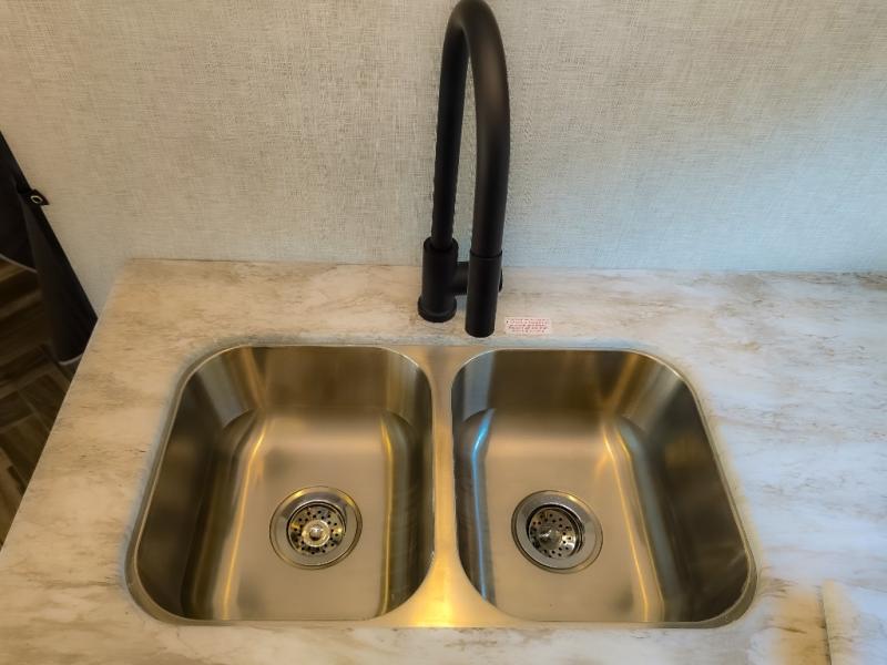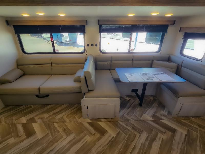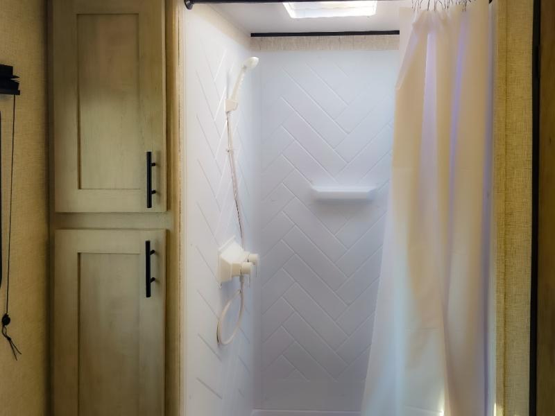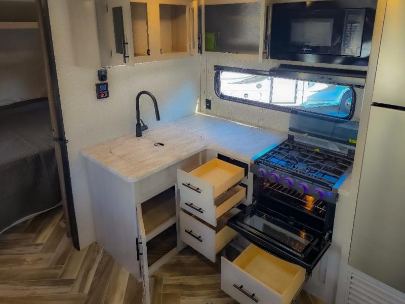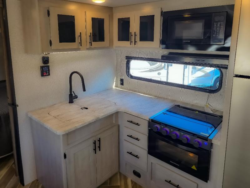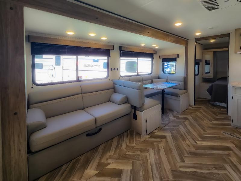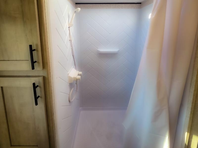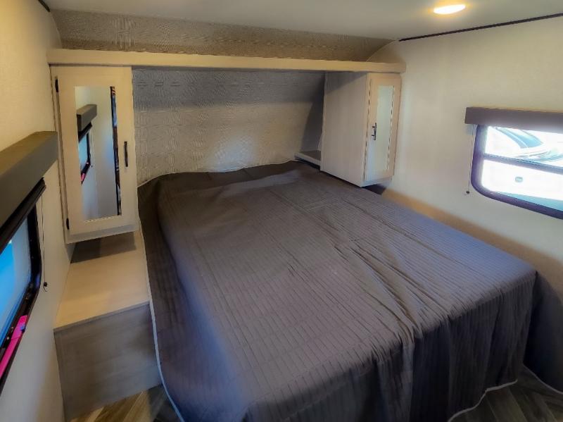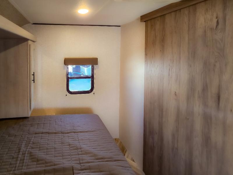 You need this award-winning travel trailer for your next weekend getaway! The full rear bathroom is decked out in features you're going to love like the dual-sink vanity for two to get ready at once, the linen closet next to the 30" x 36" shower and the second linen closet across from the closet with washer and dryer prep. After a fun-filled day outdoors, you can head inside and relax on either the 60" jackknife sofa and enjoy the entertainment center with a fireplace or grab a snack from the 10-cu. ft. refrigerator and play a few card games at the U-shaped dinette. The front private bedroom features a 60" x 74" RV queen bed with shirt closets on either side of it to keep your clothes looking nice!