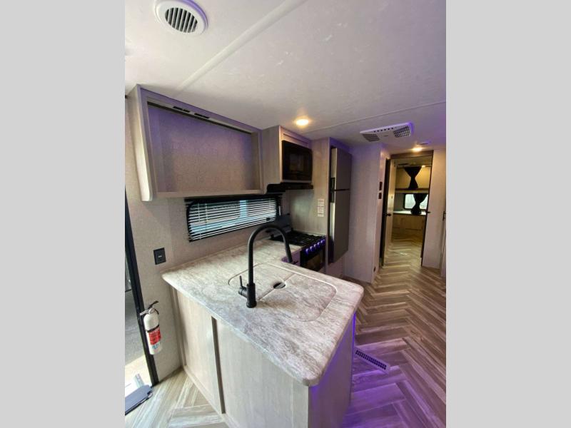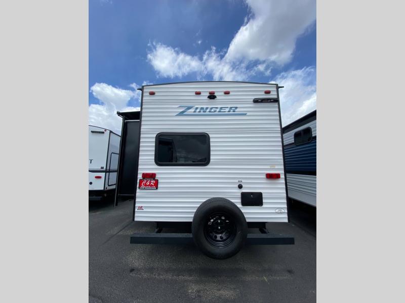 Lead your family to a great vacation getaway in any one of these CrossRoads RV Zinger travel trailers! They feature an aerodynamic front end, Keyed-Alike door locks, Secure Stance entry steps, and exterior speakers with LED accents. The interior of each model includes kitchen backsplash and pressed countertops, along with generous storage, designer valances, and LED lighting to keep your space well lit. You will also appreciate USB ports to keep your electronics charged up, and there is an AM/FM stereo with a Bluetooth soundbar to keep the party going!