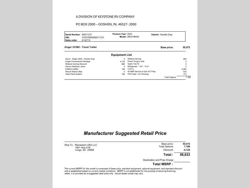 Zinger 331BH - Travel Trailer Decor - Zinger - Granite Gray Zinger