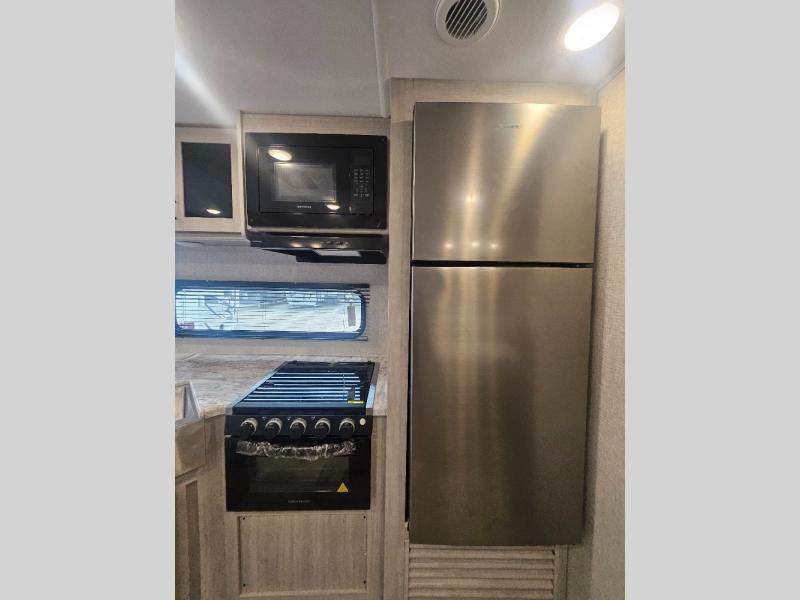 Lead your family to a great vacation getaway in any one of these CrossRoads RV Zinger travel trailers! They feature an aerodynamic front end, Keyed-Alike door locks, Secure Stance entry steps, and exterior speakers with LED accents. The interior of each model includes kitchen backsplash and pressed countertops, along with generous storage, designer valances, and LED lighting to keep your space well lit. You will also appreciate USB ports to keep your electronics charged up, and there is an AM/FM stereo with a Bluetooth soundbar to keep the party going!