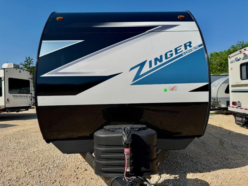Lead your family to a great vacation getaway in any one of these CrossRoads RV Zinger travel trailers! They feature an aerodynamic front end, Keyed-Alike door locks, Secure Stance entry steps, and exterior speakers with LED accents. The interior of each model includes kitchen backsplash and pressed countertops, along with generous storage, designer valances, and LED lighting to keep your space well lit. You will also appreciate USB ports to keep your electronics charged up, and there is an AM/FM stereo with a Bluetooth soundbar to keep the party going!