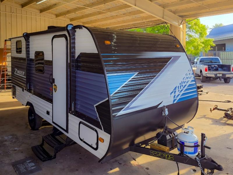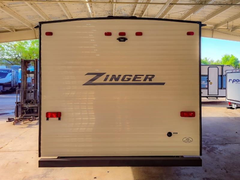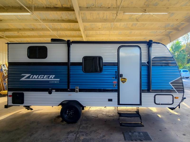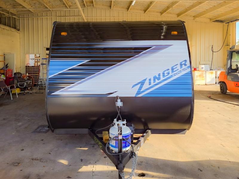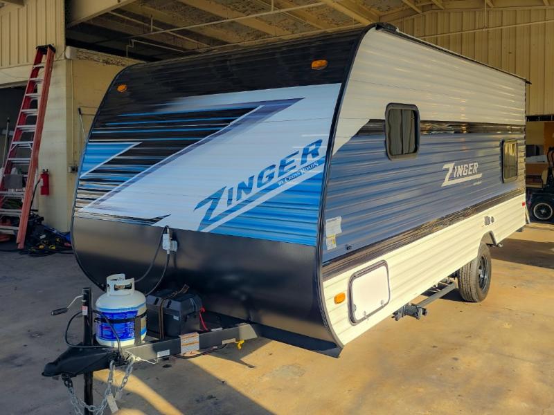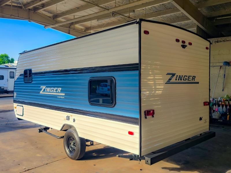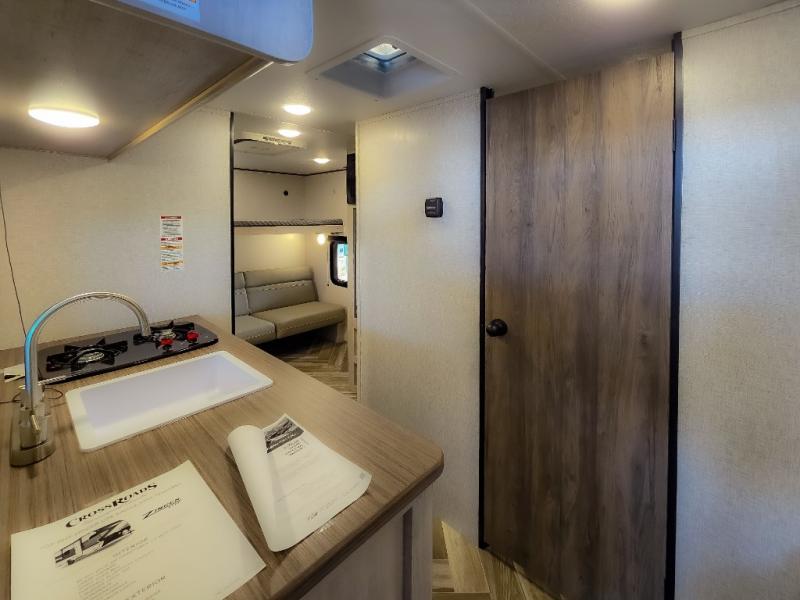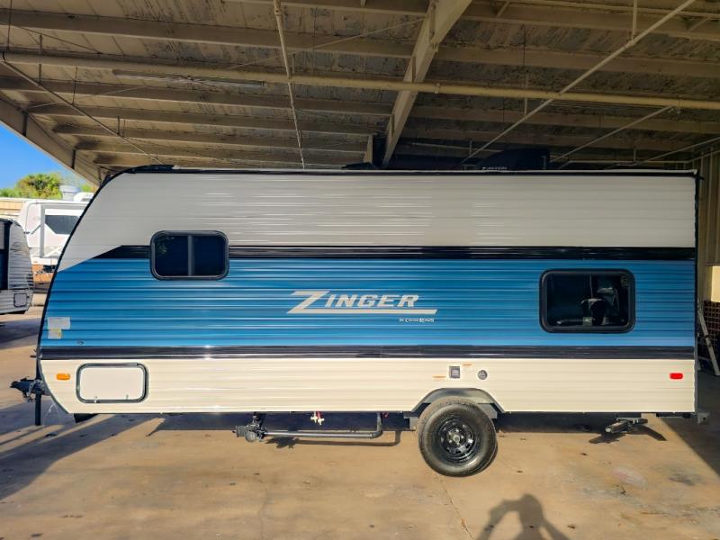 Join the CrossRoads family with a Zinger Lite travel trailer! You'll enjoy an abundance of standard features you would usually find with higher priced travel trailers. Each model features a Super Flex Alpha Roof and front diamond plate for added strength and durability. There is also an electric awning outdoors, along with pass-through storage, rear ladder prep, and a tankless on-demand water heater for added convenience. The interior features pleated shades/mini blinds/fabric window treatments, a 12V refrigerator, comfortable seating and seating spaces, plus plenty of storage for your personal belongings and camp gear!