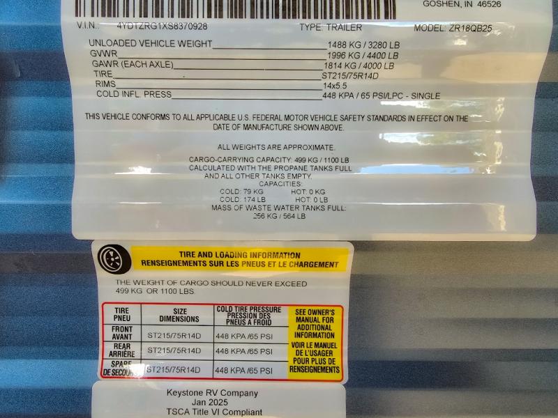 New 2025 CrossRoads RV Zinger Lite 18QB Travel Trailer