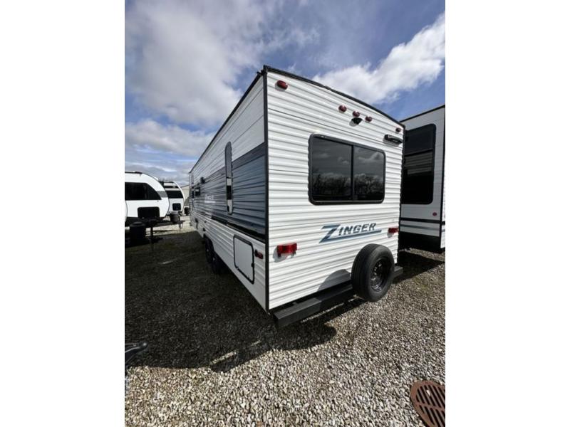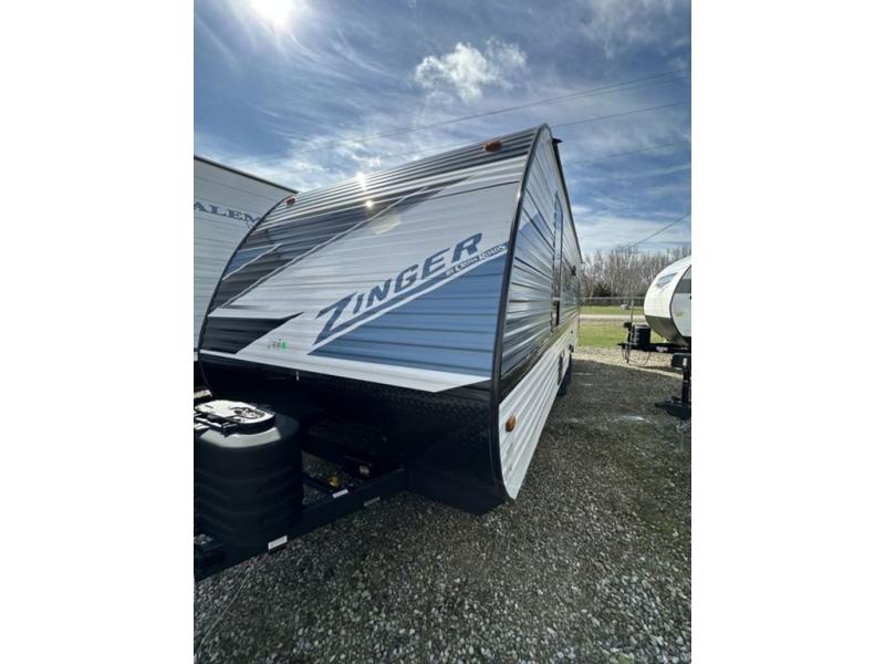 Join the CrossRoads family with a Zinger Lite travel trailer! You'll enjoy an abundance of standard features you would usually find with higher priced travel trailers. Each model features a Super Flex Alpha Roof and front diamond plate for added strength and durability. There is also an electric awning outdoors, along with pass-through storage, rear ladder prep, and a tankless on-demand water heater for added convenience. The interior features pleated shades/mini blinds/fabric window treatments, a 12V refrigerator, comfortable seating and seating spaces, plus plenty of storage for your personal belongings and camp gear!