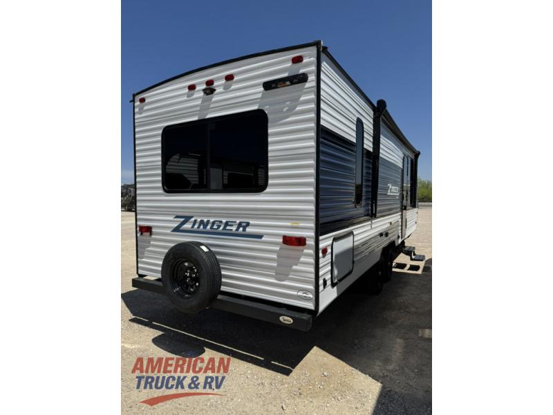 Join the CrossRoads family with a Zinger Lite travel trailer! You'll enjoy an abundance of standard features you would usually find with higher priced travel trailers. Each model features a Super Flex Alpha Roof and front diamond plate for added strength and durability. There is also an electric awning outdoors, along with pass-through storage, rear ladder prep, and a tankless on-demand water heater for added convenience. The interior features pleated shades/mini blinds/fabric window treatments, a 12V refrigerator, comfortable seating and seating spaces, plus plenty of storage for your personal belongings and camp gear!