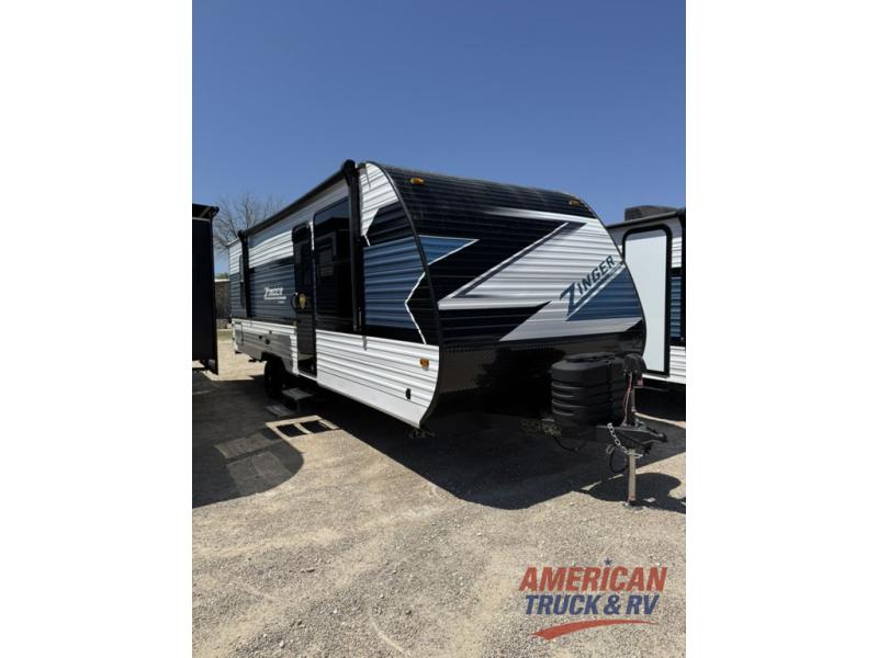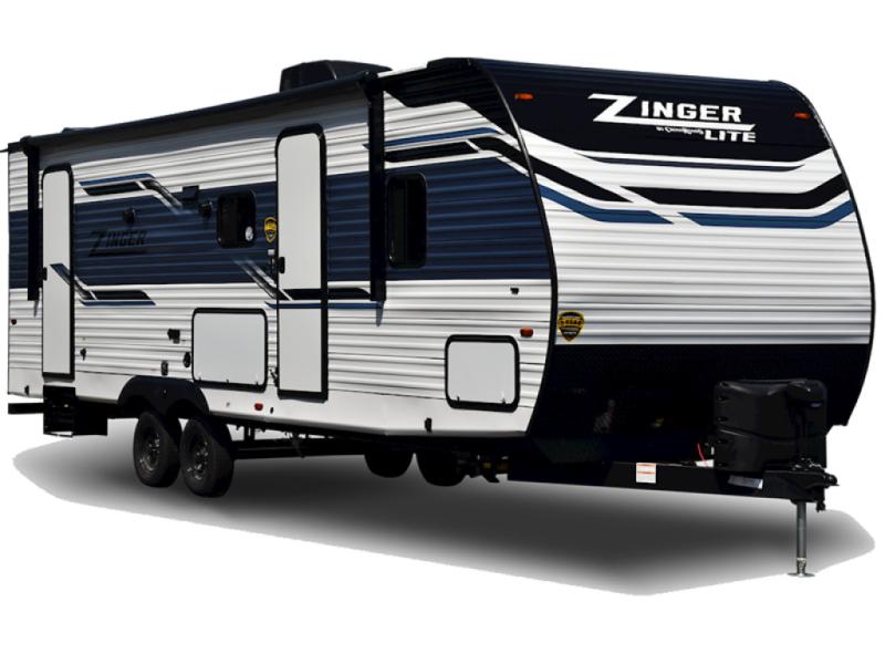 Join the CrossRoads family with a Zinger Lite travel trailer! You'll enjoy an abundance of standard features you would usually find with higher priced travel trailers. Each model features a Super Flex Alpha Roof and front diamond plate for added strength and durability. There is also an electric awning outdoors, along with pass-through storage, rear ladder prep, and a tankless on-demand water heater for added convenience. The interior features pleated shades/mini blinds/fabric window treatments, a 12V refrigerator, comfortable seating and seating spaces, plus plenty of storage for your personal belongings and camp gear!