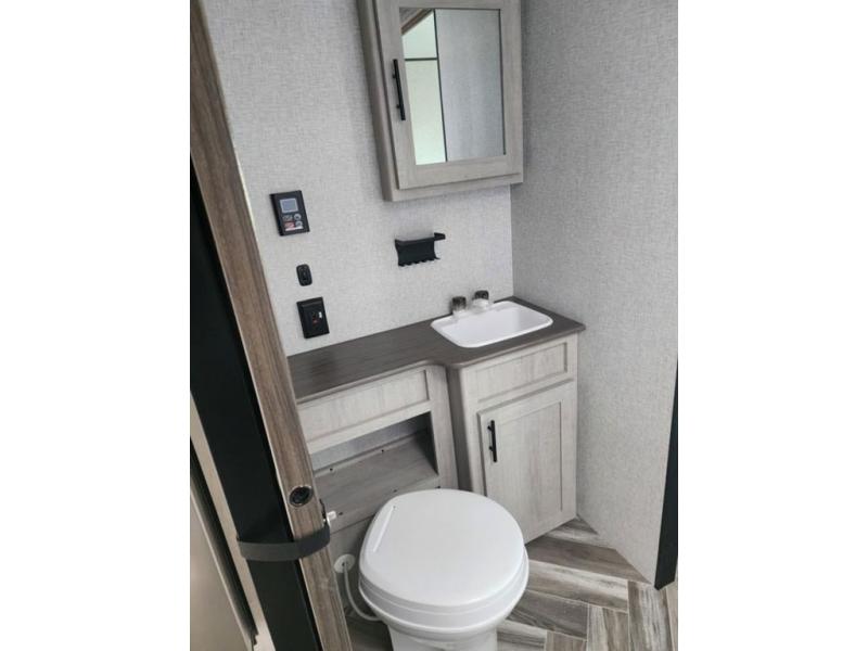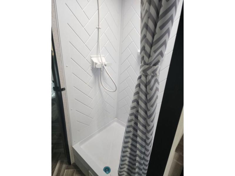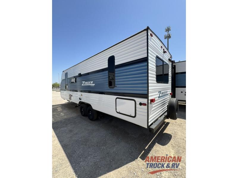 You and your spouse will not want to leave the campsite with this Zinger Lite travel trailer! There is a comfortable 60" jackknife sofa with an end table across from the front entertainment center which features an HDTV for you to watch your favorite movies on at night. The outstanding kitchen not only has two bar stools at the countertop, but it also has a 10 cu. ft. 12V refrigerator and an oven with an LED glass top. You can head right into the rear private bedroom from the walk-through bath and take a quick nap on the RV queen bed with shirt closets on either side to keep your hang-up clothes neat and tidy!