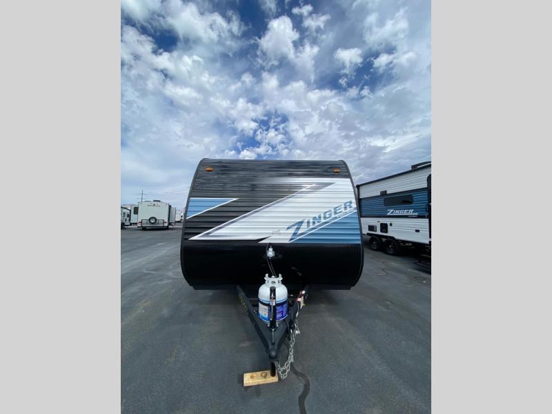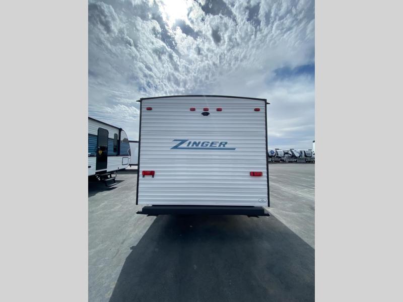 Join the CrossRoads family with a Zinger Lite travel trailer! You'll enjoy an abundance of standard features you would usually find with higher priced travel trailers. Each model features a Super Flex Alpha Roof and front diamond plate for added strength and durability. There is also an electric awning outdoors, along with pass-through storage, rear ladder prep, and a tankless on-demand water heater for added convenience. The interior features pleated shades/mini blinds/fabric window treatments, a 12V refrigerator, comfortable seating and seating spaces, plus plenty of storage for your personal belongings and camp gear!