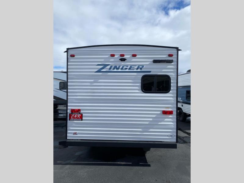 Join the CrossRoads family with a Zinger Lite travel trailer! You'll enjoy an abundance of standard features you would usually find with higher priced travel trailers. Each model features a Super Flex Alpha Roof and front diamond plate for added strength and durability. There is also an electric awning outdoors, along with pass-through storage, rear ladder prep, and a tankless on-demand water heater for added convenience. The interior features pleated shades/mini blinds/fabric window treatments, a 12V refrigerator, comfortable seating and seating spaces, plus plenty of storage for your personal belongings and camp gear!