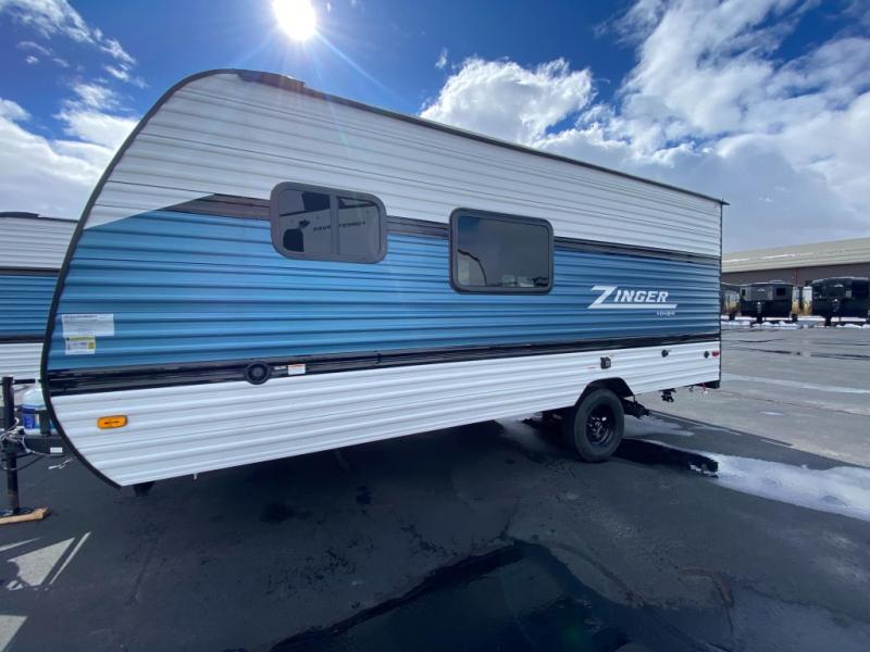 This Zinger Lite travel trailer has everything you need for your next family or friends vacation. With room for three to four, pack up the kids or some friends for a fun weekend getaway. This unit includes a comfortable RV queen bed with an overhead cabinet for your clothes. After a day of exploring, kick back on the 60" sofa as you visit with family or enjoy lunch at the bar top with two stools. You'll feel right at home with a spacious full bath and a medicine cabinet for the first aid kit.