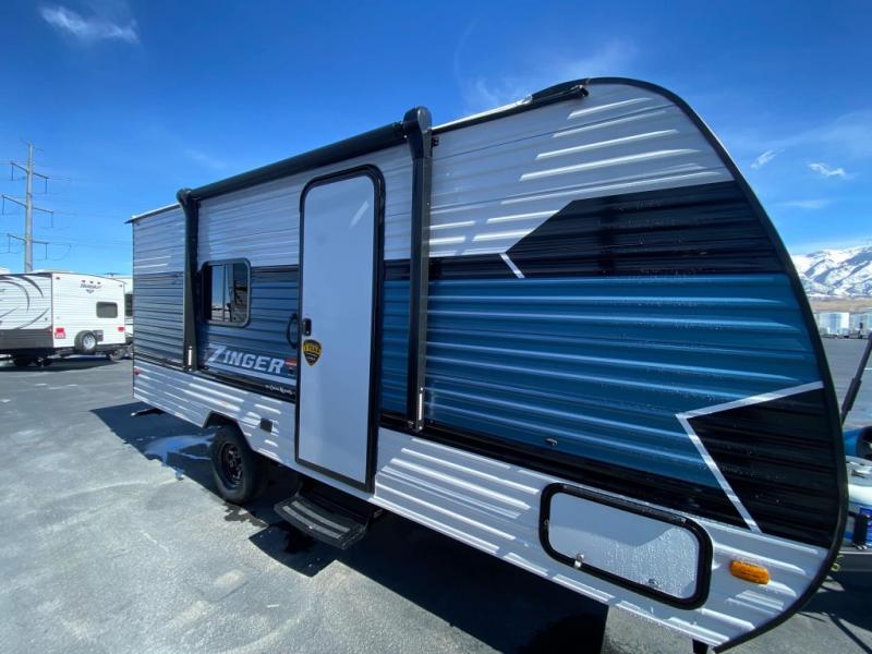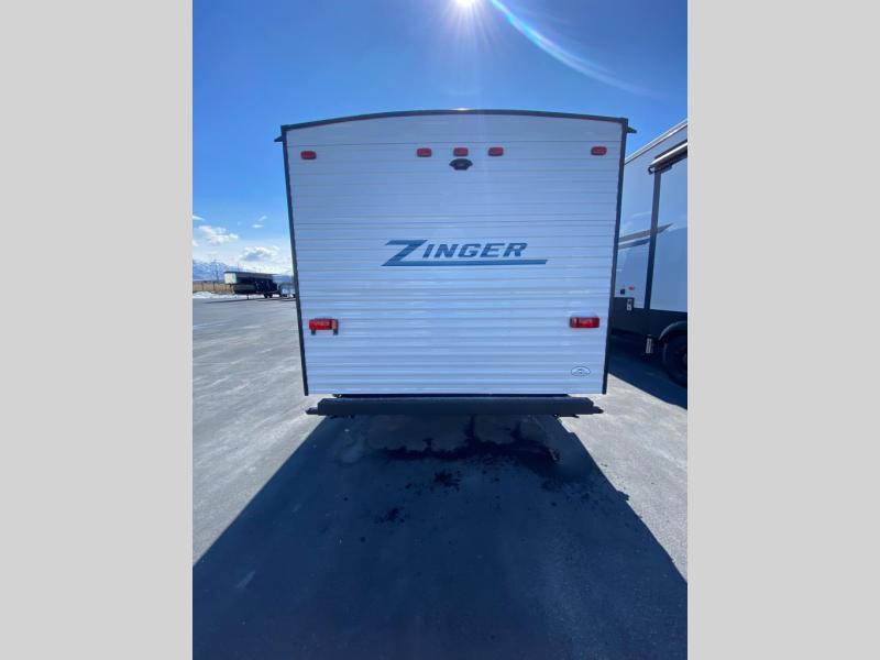 Join the CrossRoads family with a Zinger Lite travel trailer! You'll enjoy an abundance of standard features you would usually find with higher priced travel trailers. Each model features a Super Flex Alpha Roof and front diamond plate for added strength and durability. There is also an electric awning outdoors, along with pass-through storage, rear ladder prep, and a tankless on-demand water heater for added convenience. The interior features pleated shades/mini blinds/fabric window treatments, a 12V refrigerator, comfortable seating and seating spaces, plus plenty of storage for your personal belongings and camp gear!