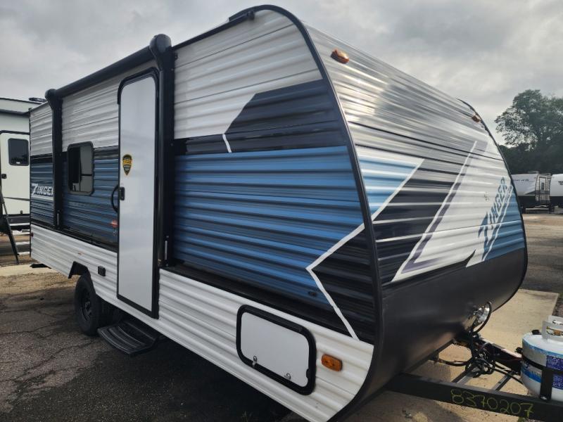 Join the CrossRoads family with a Zinger Lite travel trailer! You'll enjoy an abundance of standard features you would usually find with higher priced travel trailers. Each model features a Super Flex Alpha Roof and front diamond plate for added strength and durability. There is also an electric awning outdoors, along with pass-through storage, rear ladder prep, and a tankless on-demand water heater for added convenience. The interior features pleated shades/mini blinds/fabric window treatments, a 12V refrigerator, comfortable seating and seating spaces, plus plenty of storage for your personal belongings and camp gear!