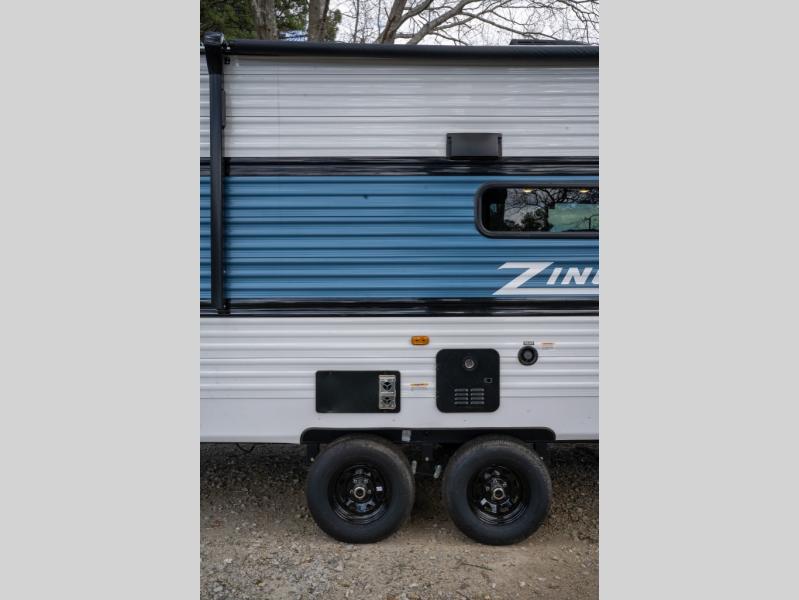 Join the CrossRoads family with a Zinger Lite travel trailer! You'll enjoy an abundance of standard features you would usually find with higher priced travel trailers. Each model features a Super Flex Alpha Roof and front diamond plate for added strength and durability. There is also an electric awning outdoors, along with pass-through storage, rear ladder prep, and a tankless on-demand water heater for added convenience. The interior features pleated shades/mini blinds/fabric window treatments, a 12V refrigerator, comfortable seating and seating spaces, plus plenty of storage for your personal belongings and camp gear!