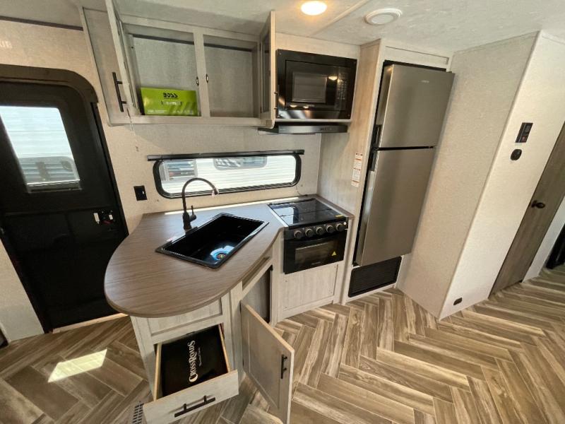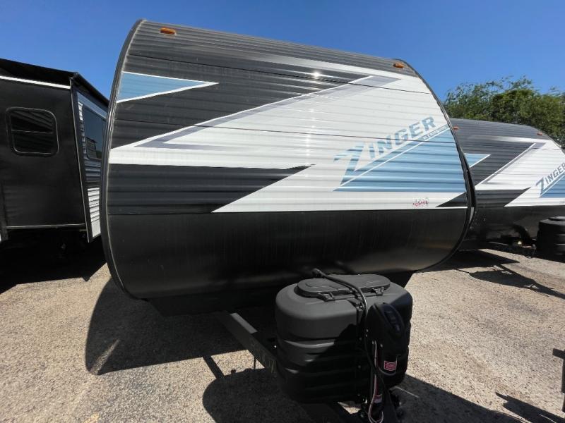 Join the CrossRoads family with a Zinger Lite travel trailer! You'll enjoy an abundance of standard features you would usually find with higher priced travel trailers. Each model features a Super Flex Alpha Roof and front diamond plate for added strength and durability. There is also an electric awning outdoors, along with pass-through storage, rear ladder prep, and a tankless on-demand water heater for added convenience. The interior features pleated shades/mini blinds/fabric window treatments, a 12V refrigerator, comfortable seating and seating spaces, plus plenty of storage for your personal belongings and camp gear!