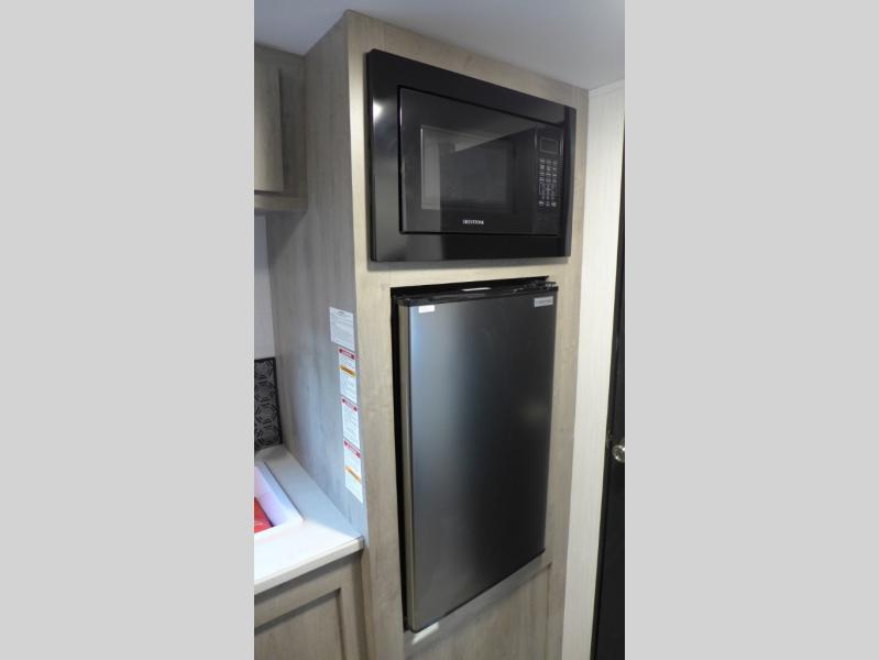 With any Avenir travel trailer by Cruiser RV, you will enjoy affordable luxury at every turn! The smooth corrugated metal exterior and industry leading 3X's full-height cross-members provide a durable foundation, and the Cruiser climate defense heated/enclosed underbelly helps extend your camping season. There is LED batten strip lighting with a dimmer, max storage in the deluxe curated kitchen, and thoughtfully located USB ports and 110V charging outlets to keep your electronics charged. A central control panel lets you easily access your units functions, and the Wi-Fi prep will give you the option to stay connected while you camp. Each model also features a tinted exterior glass door, an on-demand tankless water heater, solid flip-down steps with a telescoping handrail, and a roof mounted 50W solar panel with a 10A charge controller for added convenience.