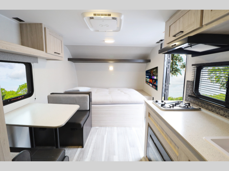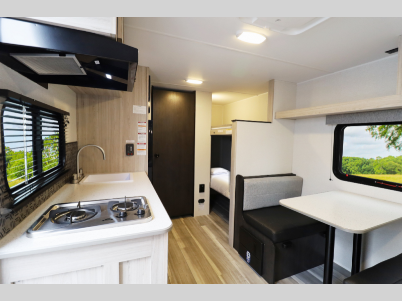 • Double bunks and a convertible dinette create real sleeping space without adding length or weight.