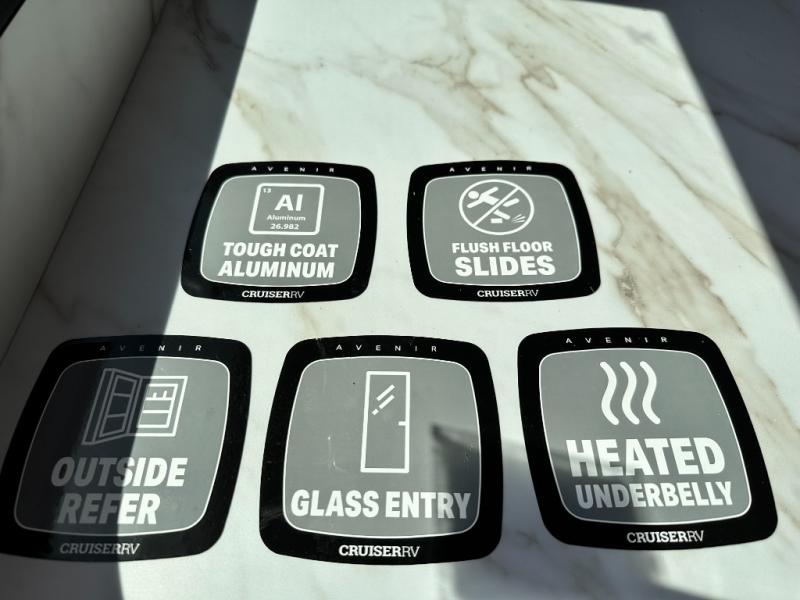 With any Avenir travel trailer by Cruiser RV, you will enjoy affordable luxury at every turn! The smooth corrugated metal exterior and industry leading 3X's full-height cross-members provide a durable foundation, and the Cruiser climate defense heated/enclosed underbelly helps extend your camping season. There is LED batten strip lighting with a dimmer, max storage in the deluxe curated kitchen, and thoughtfully located USB ports and 110V charging outlets to keep your electronics charged. A central control panel lets you easily access your units functions, and the Wi-Fi prep will give you the option to stay connected while you camp. Each model also features a tinted exterior glass door, an on-demand tankless water heater, solid flip-down steps with a telescoping handrail, and a roof mounted 50W solar panel with a 10A charge controller for added convenience.