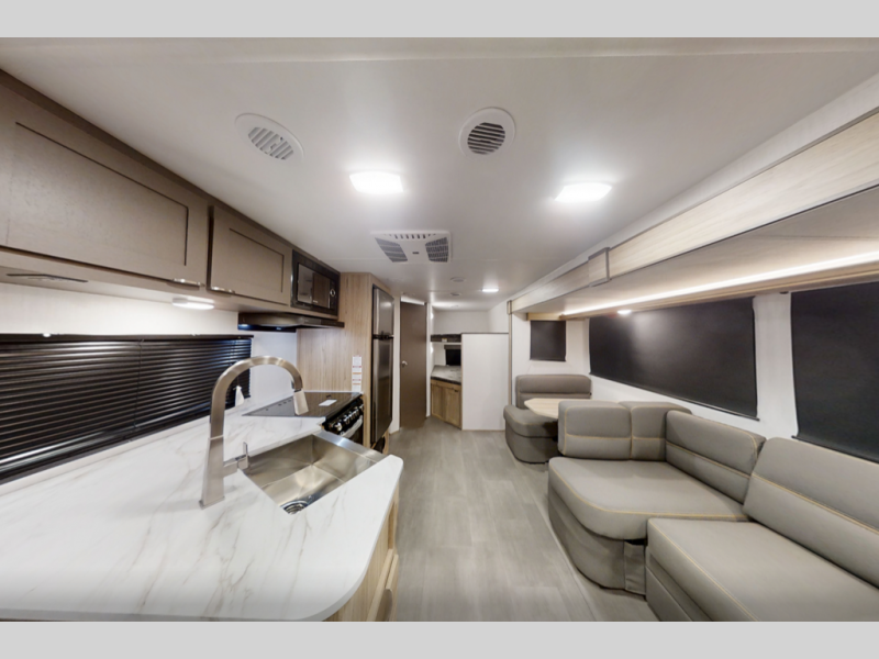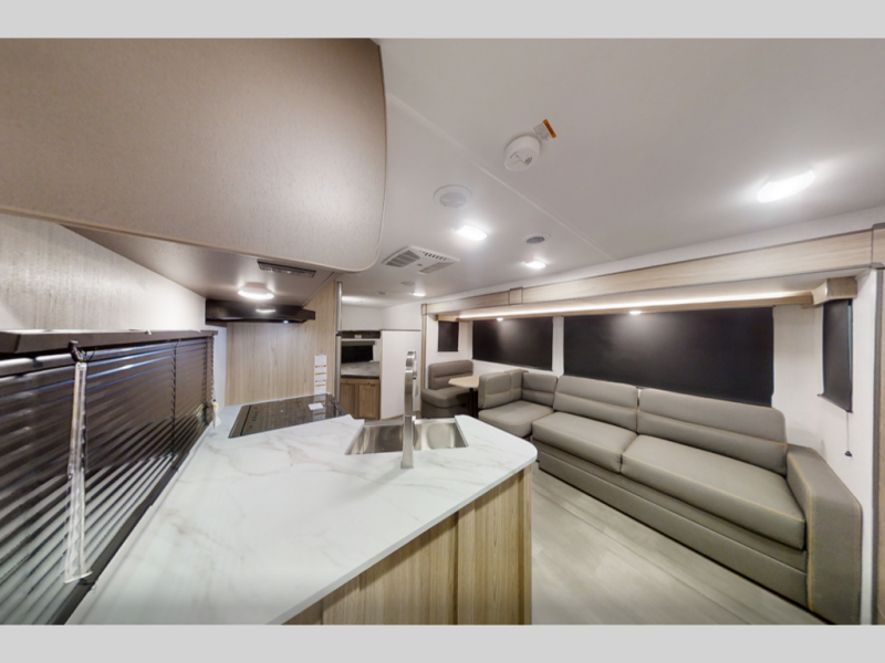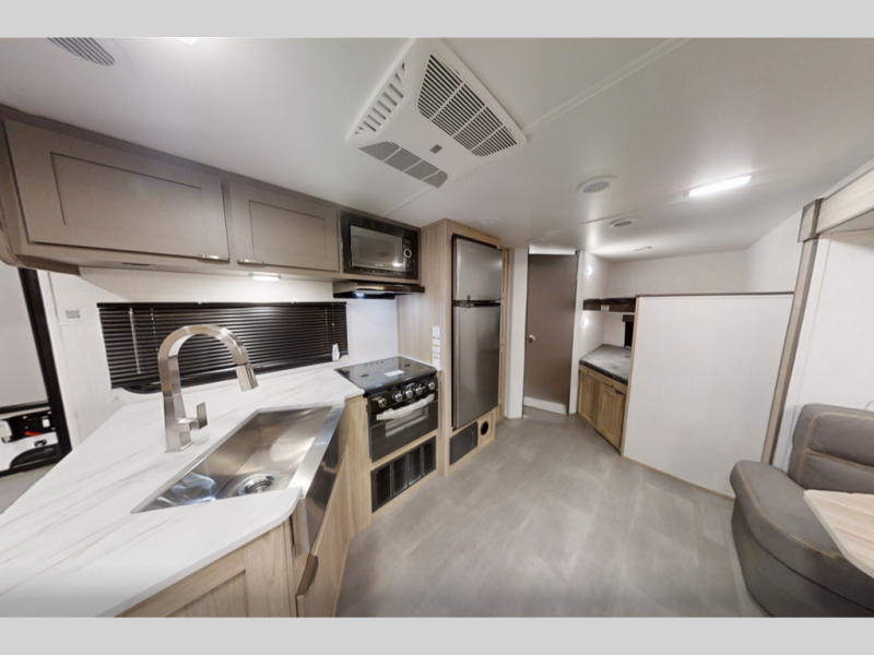 With any Avenir travel trailer by Cruiser RV, you will enjoy affordable luxury at every turn! The smooth corrugated metal exterior and industry leading 3X's full-height cross-members provide a durable foundation, and the Cruiser climate defense heated/enclosed underbelly helps extend your camping season. There is LED batten strip lighting with a dimmer, max storage in the deluxe curated kitchen, and thoughtfully located USB ports and 110V charging outlets to keep your electronics charged. A central control panel lets you easily access your units functions, and the Wi-Fi prep will give you the option to stay connected while you camp. Each model also features a tinted exterior glass door, an on-demand tankless water heater, solid flip-down steps with a telescoping handrail, and a roof mounted 50W solar panel with a 10A charge controller for added convenience.