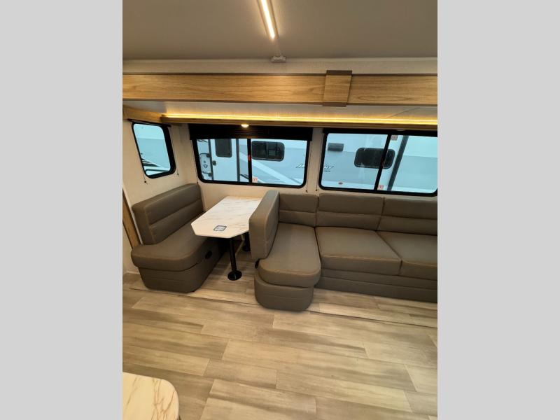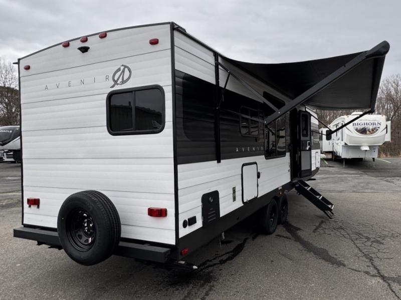 With any Avenir travel trailer by Cruiser RV, you will enjoy affordable luxury at every turn! The smooth corrugated metal exterior and industry leading 3X's full-height cross-members provide a durable foundation, and the Cruiser climate defense heated/enclosed underbelly helps extend your camping season. There is LED batten strip lighting with a dimmer, max storage in the deluxe curated kitchen, and thoughtfully located USB ports and 110V charging outlets to keep your electronics charged. A central control panel lets you easily access your units functions, and the Wi-Fi prep will give you the option to stay connected while you camp. Each model also features a tinted exterior glass door, an on-demand tankless water heater, solid flip-down steps with a telescoping handrail, and a roof mounted 50W solar panel with a 10A charge controller for added convenience.