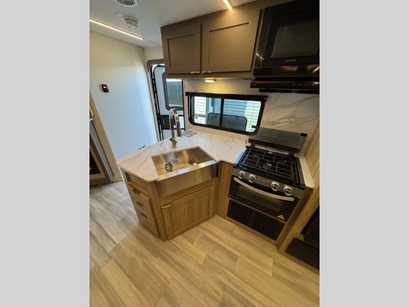 With any Avenir travel trailer by Cruiser RV, you will enjoy affordable luxury at every turn! The smooth corrugated metal exterior and industry leading 3X's full-height cross-members provide a durable foundation, and the Cruiser climate defense heated/enclosed underbelly helps extend your camping season. There is LED batten strip lighting with a dimmer, max storage in the deluxe curated kitchen, and thoughtfully located USB ports and 110V charging outlets to keep your electronics charged. A central control panel lets you easily access your units functions, and the Wi-Fi prep will give you the option to stay connected while you camp. Each model also features a tinted exterior glass door, an on-demand tankless water heater, solid flip-down steps with a telescoping handrail, and a roof mounted 50W solar panel with a 10A charge controller for added convenience.