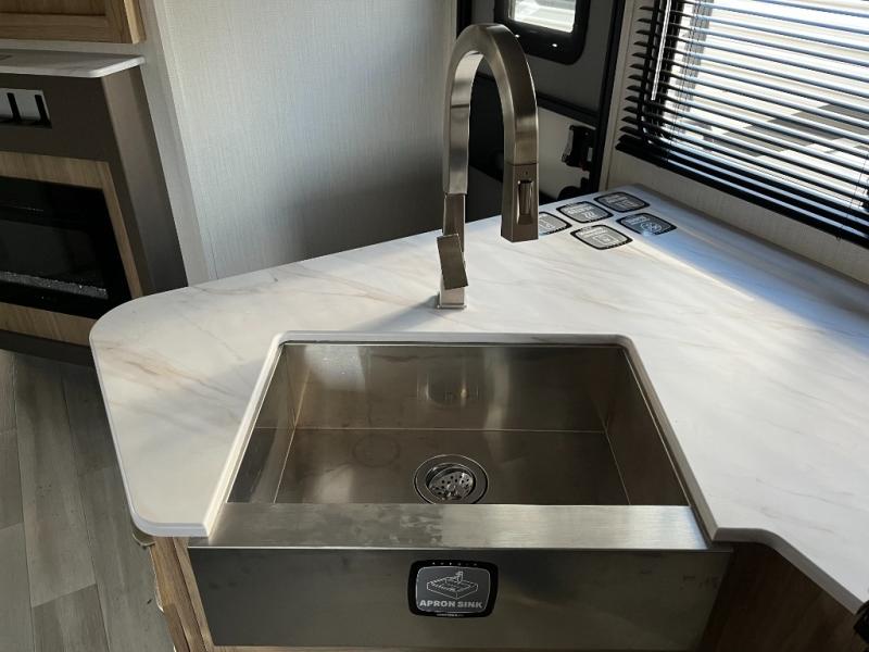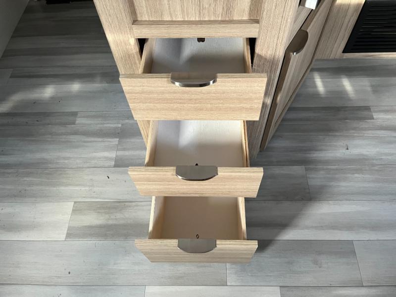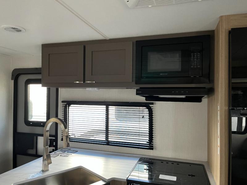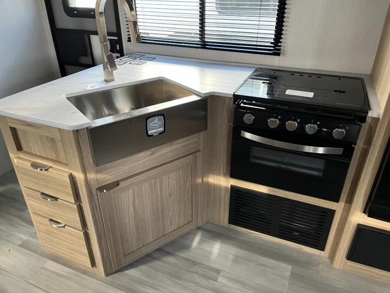 Equipped with a cooktop, oven, microwave, and refrigerator, this kitchen is ready for real meal prep. Ample counter space and smart storage make cooking easy and convenient wherever your travels take you.