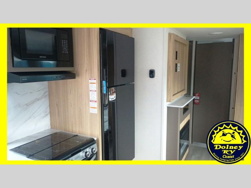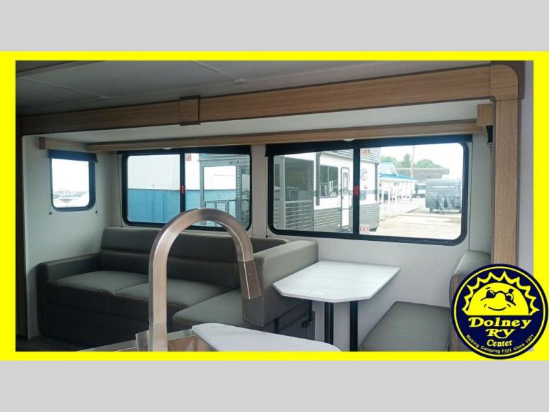 With any Avenir travel trailer by Cruiser RV, you will enjoy affordable luxury at every turn! The smooth corrugated metal exterior and industry leading 3X's full-height cross-members provide a durable foundation, and the Cruiser climate defense heated/enclosed underbelly helps extend your camping season. There is LED batten strip lighting with a dimmer, max storage in the deluxe curated kitchen, and thoughtfully located USB ports and 110V charging outlets to keep your electronics charged. A central control panel lets you easily access your units functions, and the Wi-Fi prep will give you the option to stay connected while you camp. Each model also features a tinted exterior glass door, an on-demand tankless water heater, solid flip-down steps with a telescoping handrail, and a roof mounted 50W solar panel with a 10A charge controller for added convenience.