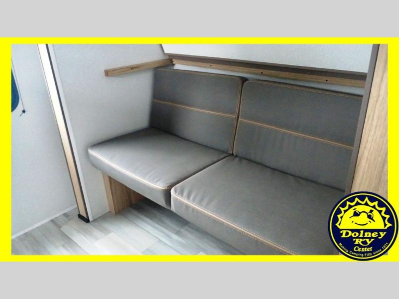 This is the perfect travel trailer to invite the whole gang along since there is a front private bedroom with a queen bed, plus a rear private bunkhouse with three bunks and a booth dinette. Everyone can meet in the combined kitchen and living room to relax on the Lux Lounge or dine at the booth dinette. And both of these pieces of furniture can double as additional sleeping space for more guests! The exterior is just as accommodating as the interior with its 18' awning, full pass-through storage, and outside refrigerator for cold drinks!