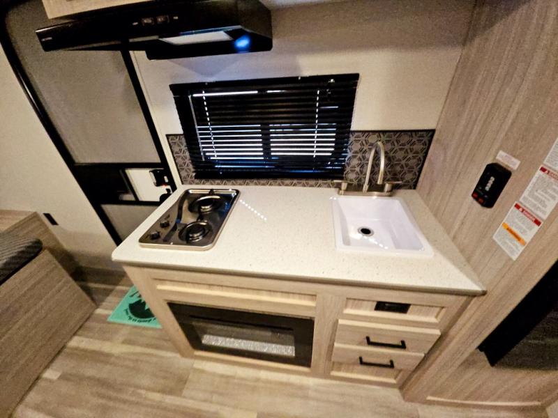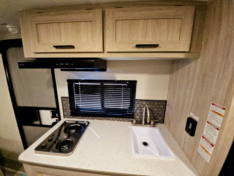 - E:ectric Water Heater, Damond Plate Stone Guard, Range W/ 2 Burner Cook Top, 2lb LP Tank,