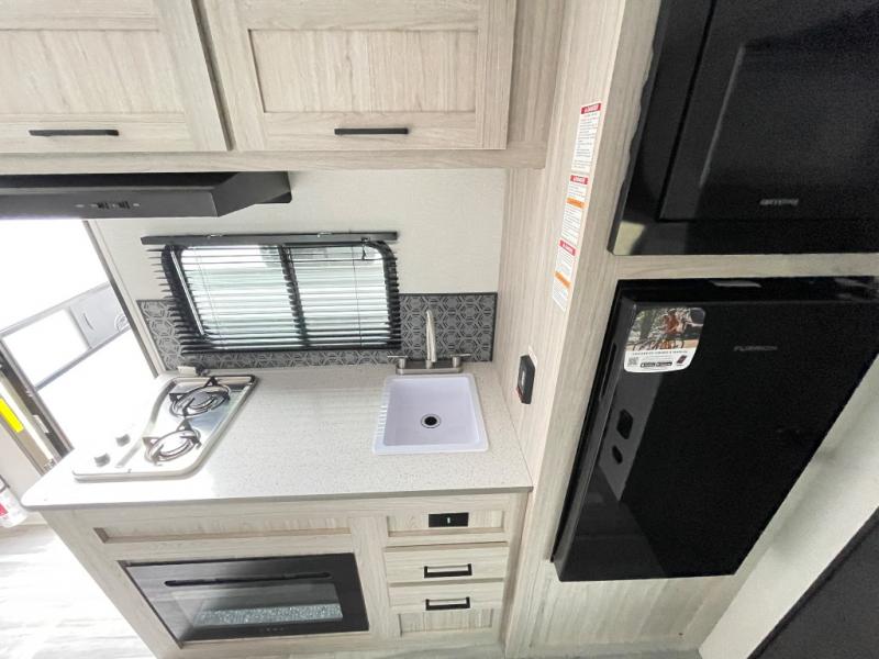 With any Avenir travel trailer by Cruiser RV, you will enjoy affordable luxury at every turn! The smooth corrugated metal exterior and industry leading 3X's full-height cross-members provide a durable foundation, and the Cruiser climate defense heated/enclosed underbelly helps extend your camping season. There is LED batten strip lighting with a dimmer, max storage in the deluxe curated kitchen, and thoughtfully located USB ports and 110V charging outlets to keep your electronics charged. A central control panel lets you easily access your units functions, and the Wi-Fi prep will give you the option to stay connected while you camp. Each model also features a tinted exterior glass door, an on-demand tankless water heater, solid flip-down steps with a telescoping handrail, and a roof mounted 50W solar panel with a 10A charge controller for added convenience.