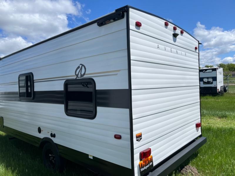 With any Avenir XLT travel trailer by Cruiser, you will enjoy camping adventures both near and far! The diamond plate stone guard and heavy duty smooth front metal will help protect against rock and debris on the way to the campground. There are also stabilizer jacks, radial tires, and a power awning with an LED light and arm adjustment. Inside, you'll enjoy an LED light, a water heater, plus kitchen appliances so you can create your best home-cooked meals!