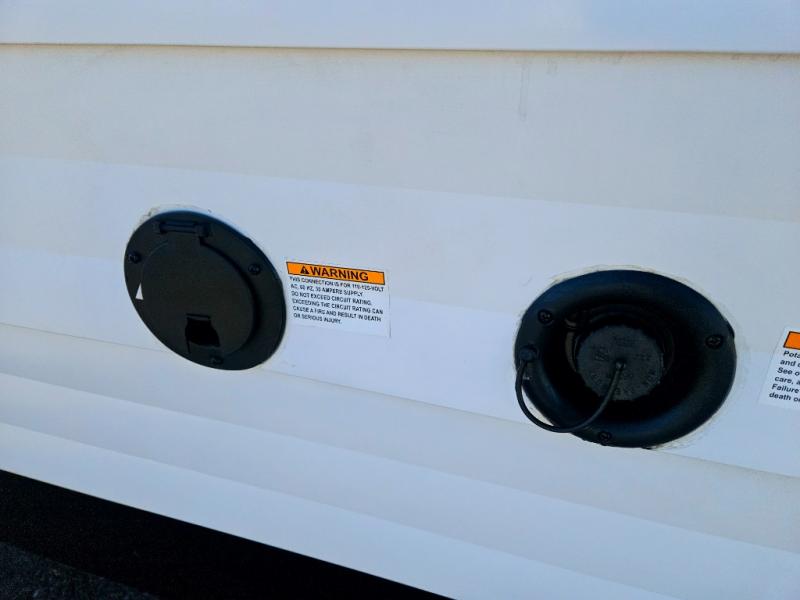 - E:ectric Water Heater, Damond Plate Stone Guard, Range W/ 2 Burner Cook Top, 2db LP Tank,